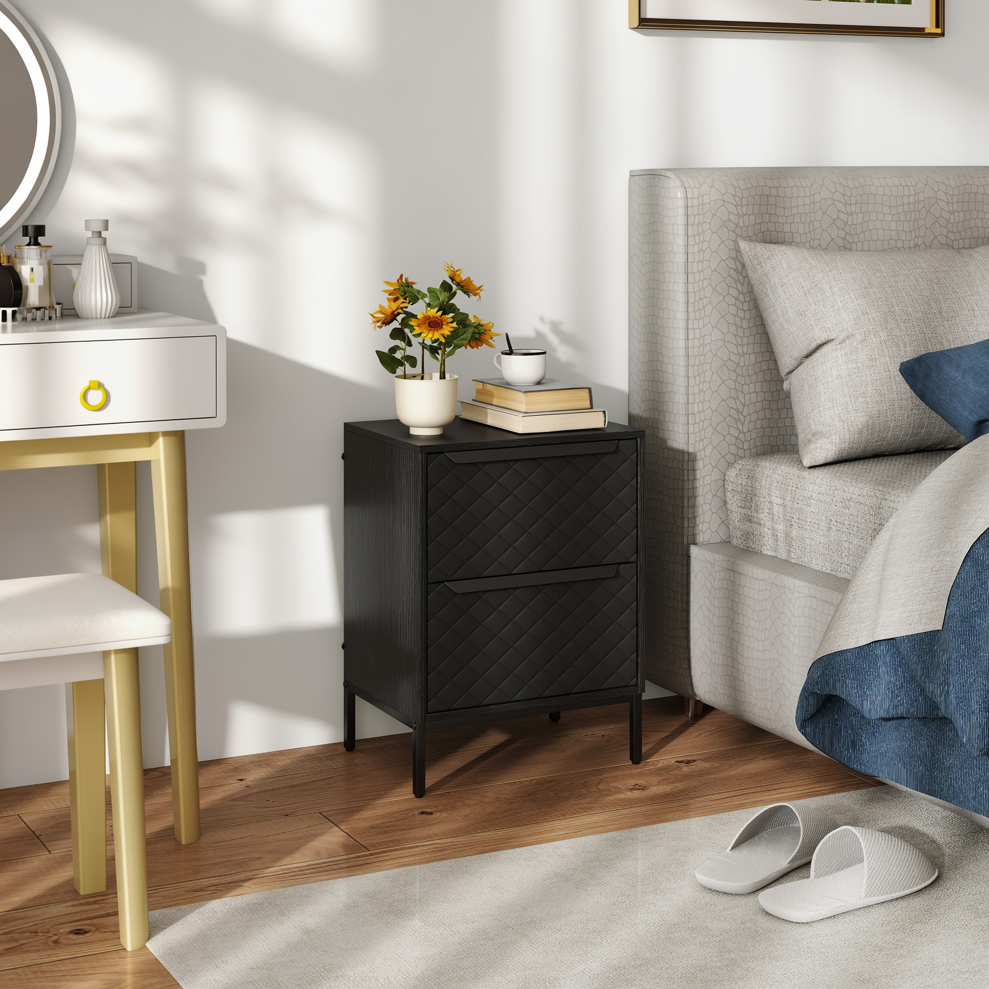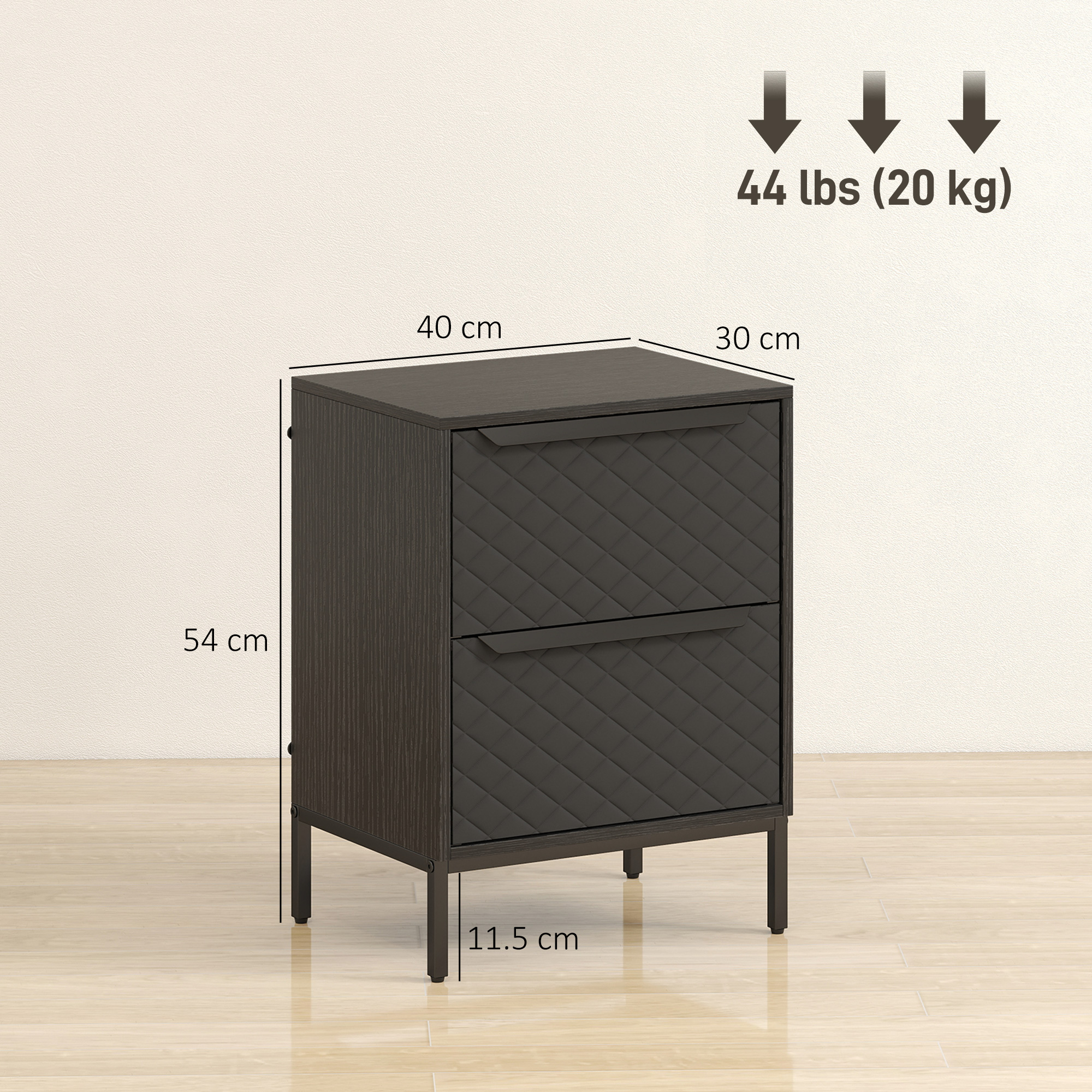Easy, simple storage with this HOMCOM fabric chest of drawers. With two same drawers, it's easy to sort everything from socks to underwear. The wood-effect MDF frame and diamond-stitched drawer fronts create a timeless modern look to suit any home decor. An MDF frame with X-bar keeps this bedroom dresser tough and stable. Complete with adjustable feet for balance even on unsteady grounds.