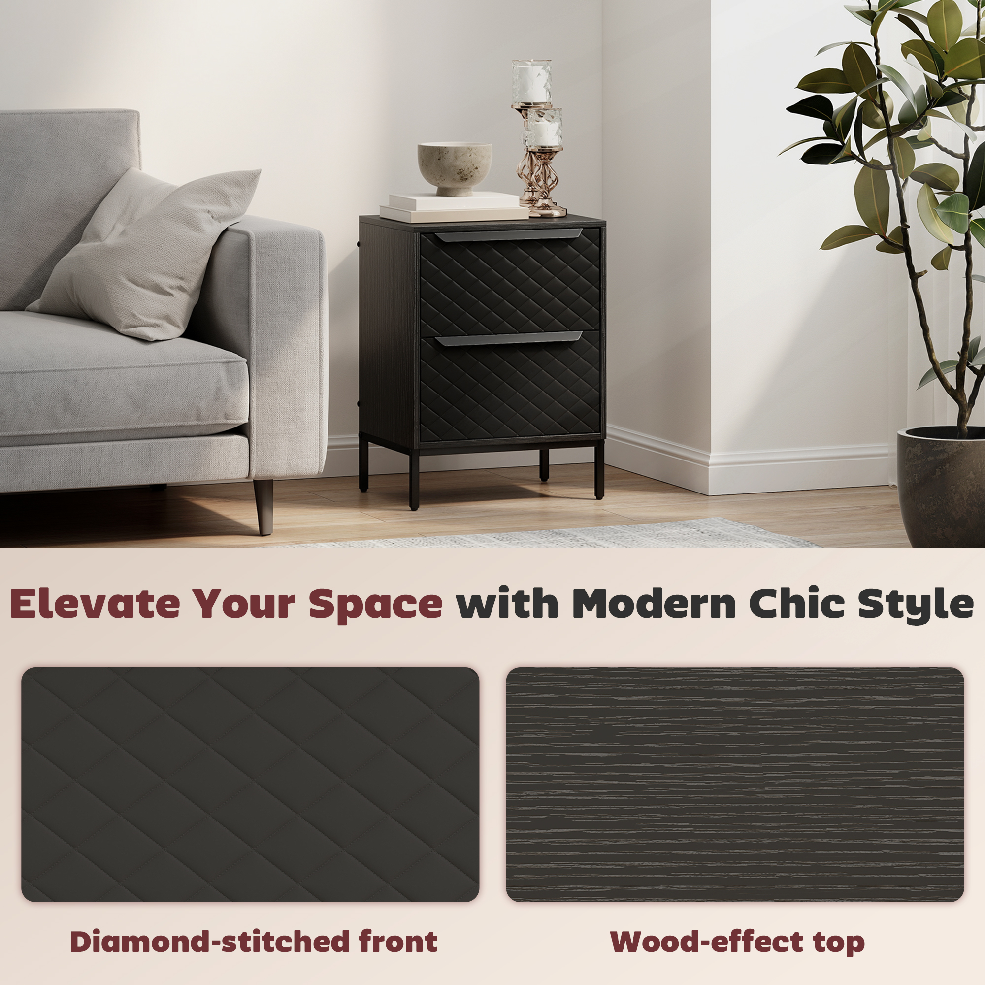 - Diamond-stitched faux leather fronts with wood-effect frame for stylish home decor
