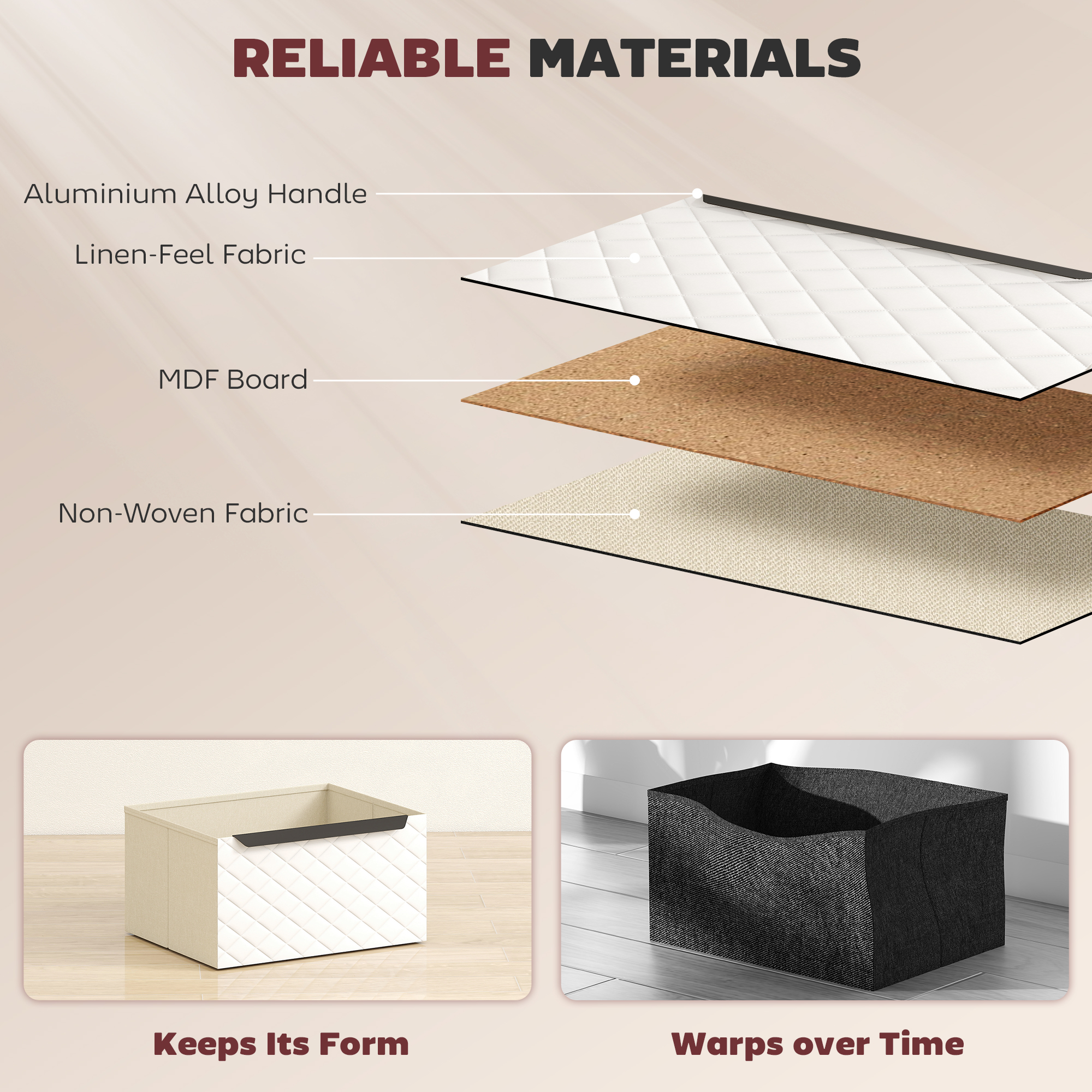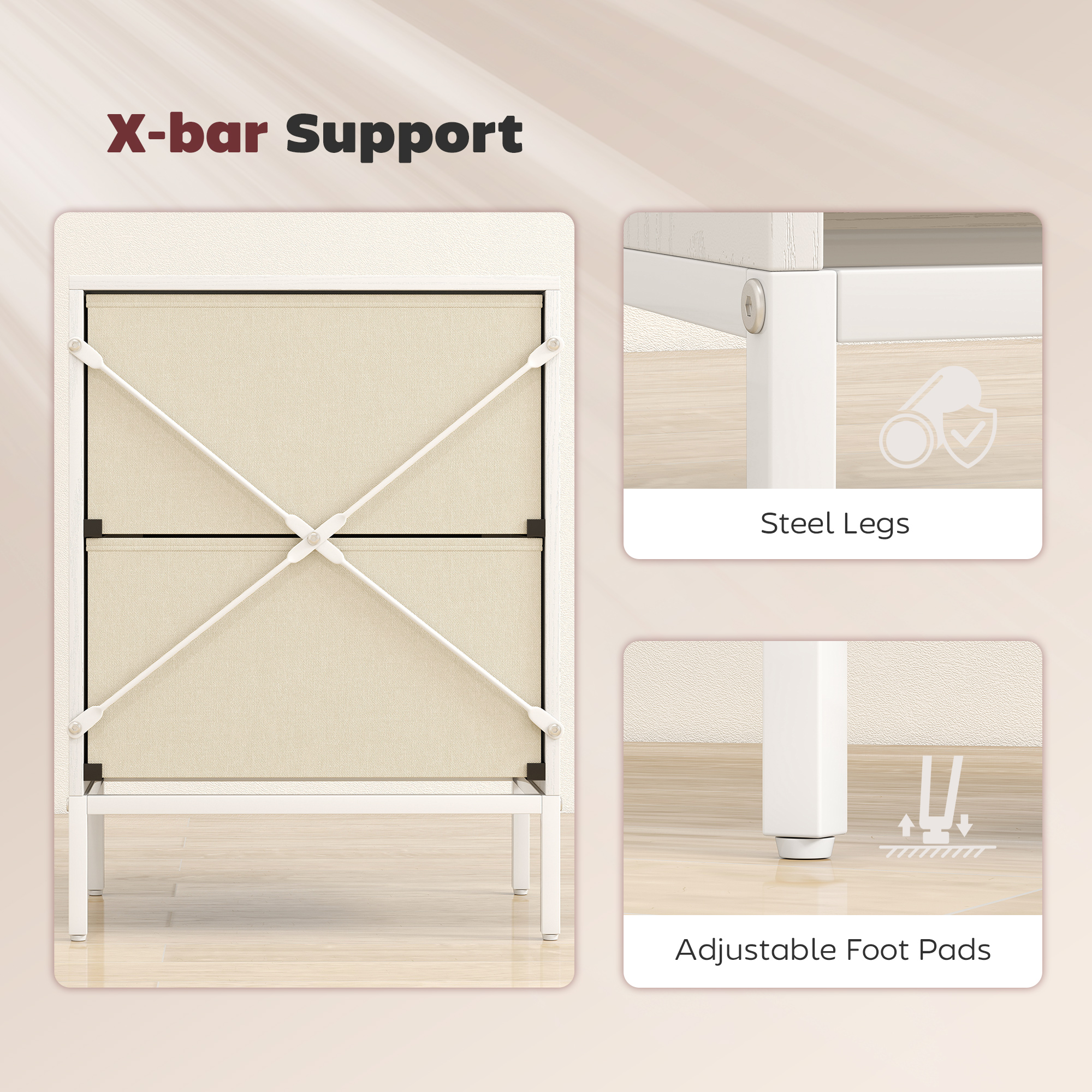 Easy, simple storage with this HOMCOM fabric chest of drawers. With two same drawers, it's easy to sort everything from socks to underwear. The wood-effect MDF frame and diamond-stitched drawer fronts create a timeless modern look to suit any home decor. An MDF frame with X-bar keeps this bedroom dresser tough and stable. Complete with adjustable feet for balance even on unsteady grounds.