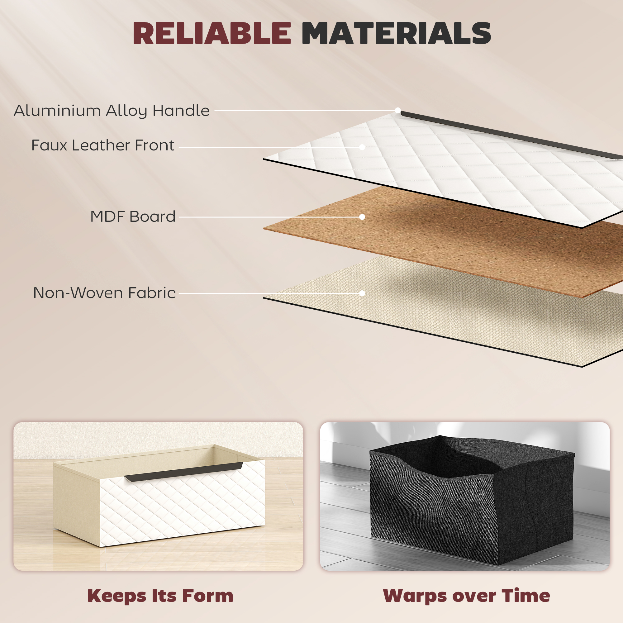 - Soft fabric drawers fitted with aluminium alloy handles for easy open/close