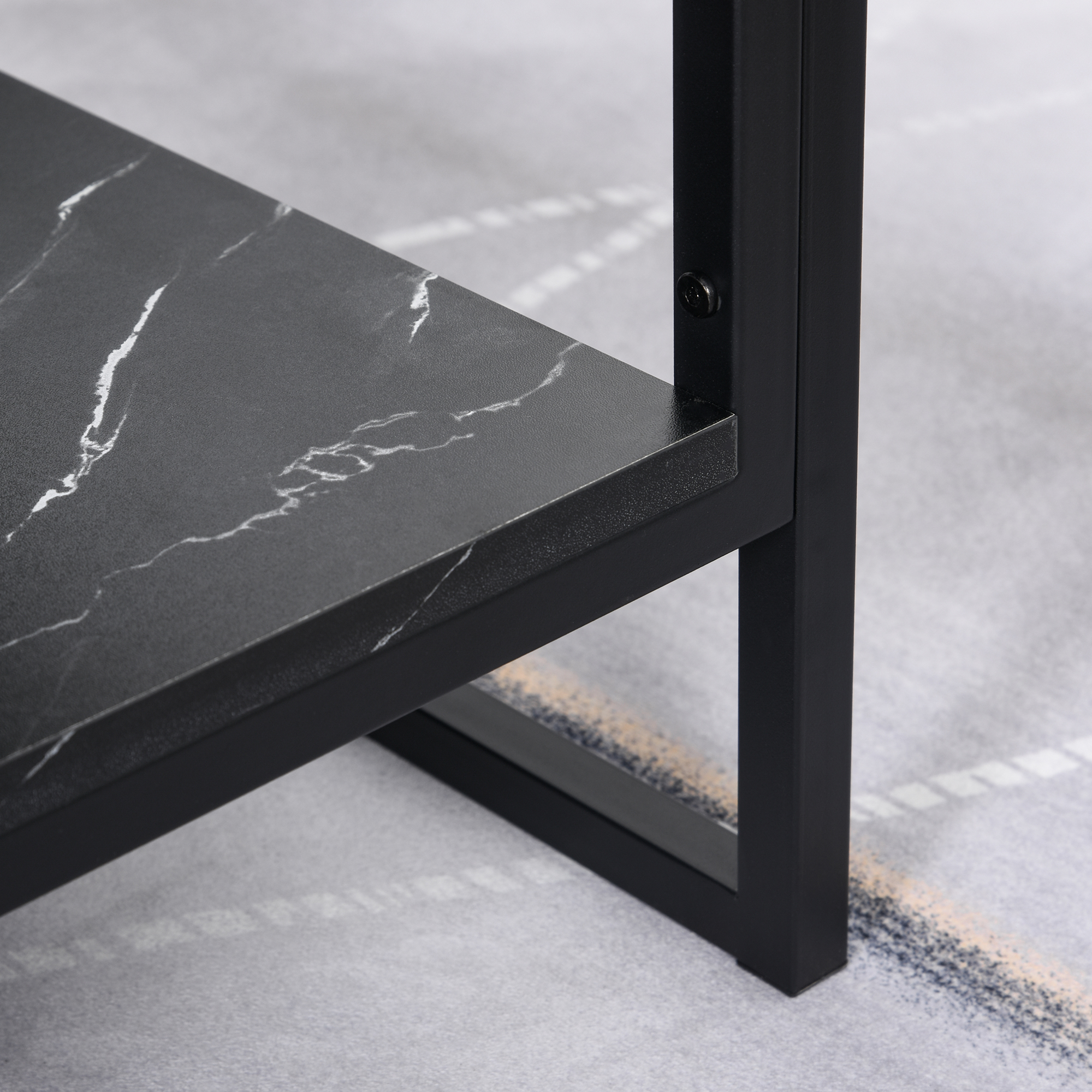 Bringing a sleek and exciting twist to an everyday home furnishing piece, this coffee table from HOMCOM is perfect for updating your space instantly. Its two-tier design ensures it will give you plenty of room for storing and holding what you need, with the metal frame ensuring it is strong and sturdy for everyday use. Both table tops are made into a laminate marble print finish for a beautiful look which looks great placed almost anywhere.