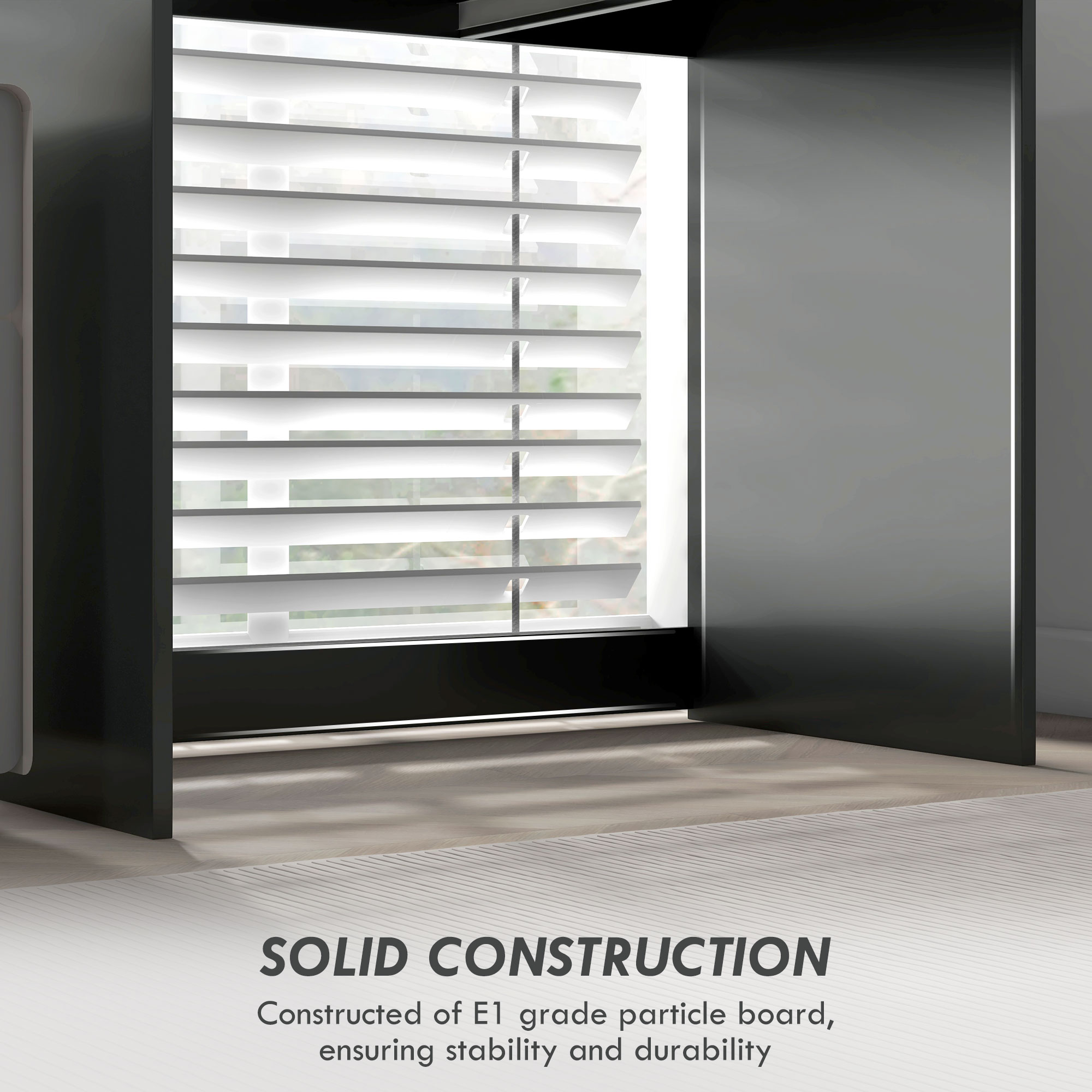 - Melamine particle board surface is easy to clean