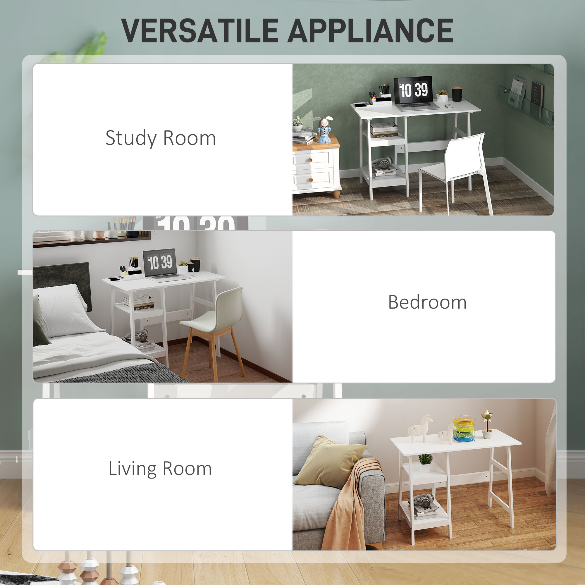 Ensure you have a clean and organised slate to work from, with full help from this computer table from HOMCOM. Design blends together a compact study desk with two side shelves - room for working, with the two shelves offering convenient storage of your papers and folders etc. The frame, made from a particle board and MDF blend, is stable and keeps the writing desk steady, making your work times as peaceful and productive as possible.