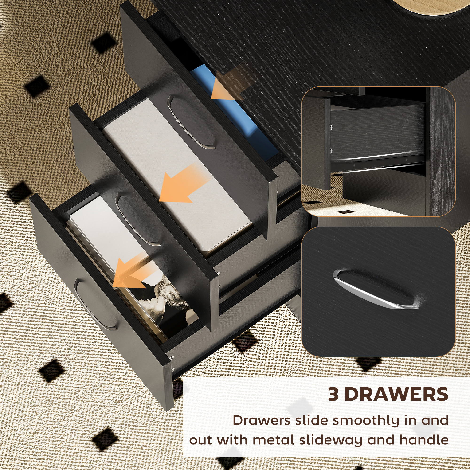Maintain a contemporary and minimalistic workspace using HOMCOM's desk with drawers. Crafted from particle board, this study table showcases a clean boxy design in a neutral colour, suitable for various home office environments. It offers three enclosed drawers and three open shelves, providing a balanced solution for work essentials and decor. The drawers feature convenient handles for a polished finish.