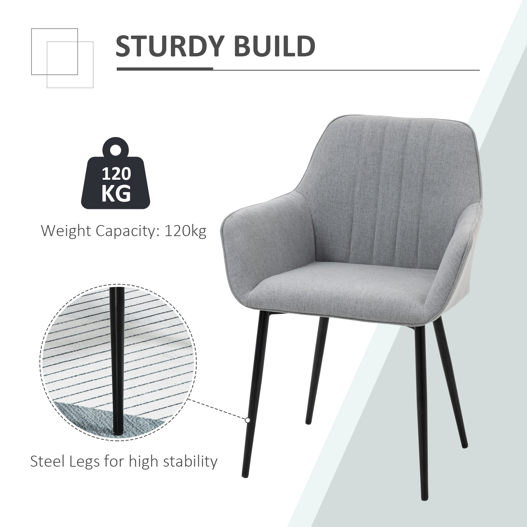 Accent your kitchen counter or seat a guest with this dining chair set. Classic and simple look blends well in a variety of stylish home setups. Soft cushioned seats and breathable linen fabric delivers exceptional comfort. The curved backrest help in keeping relaxed body posture. Metal legs add to its stability and durability.