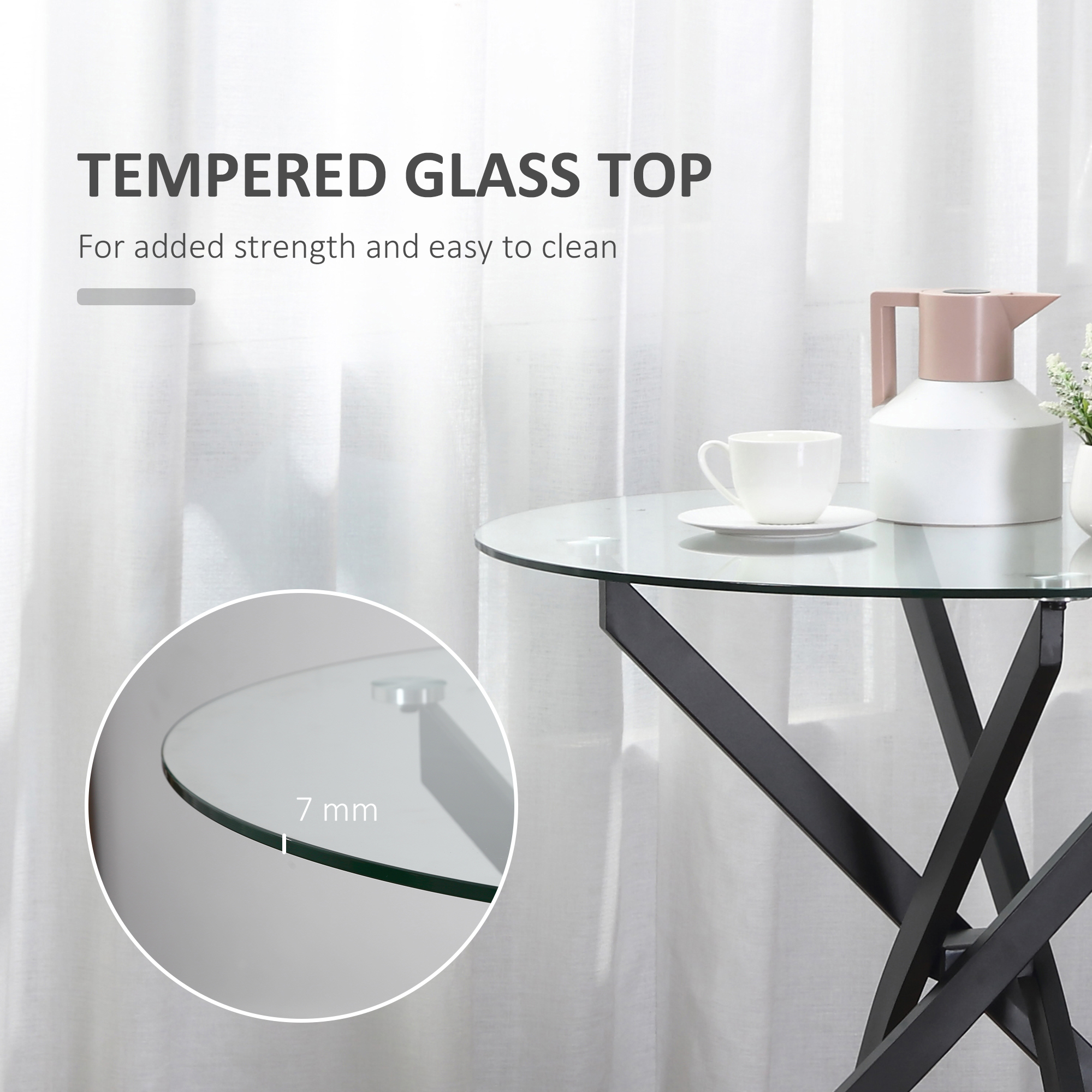 - Thickness of Glass Top: 7 mm