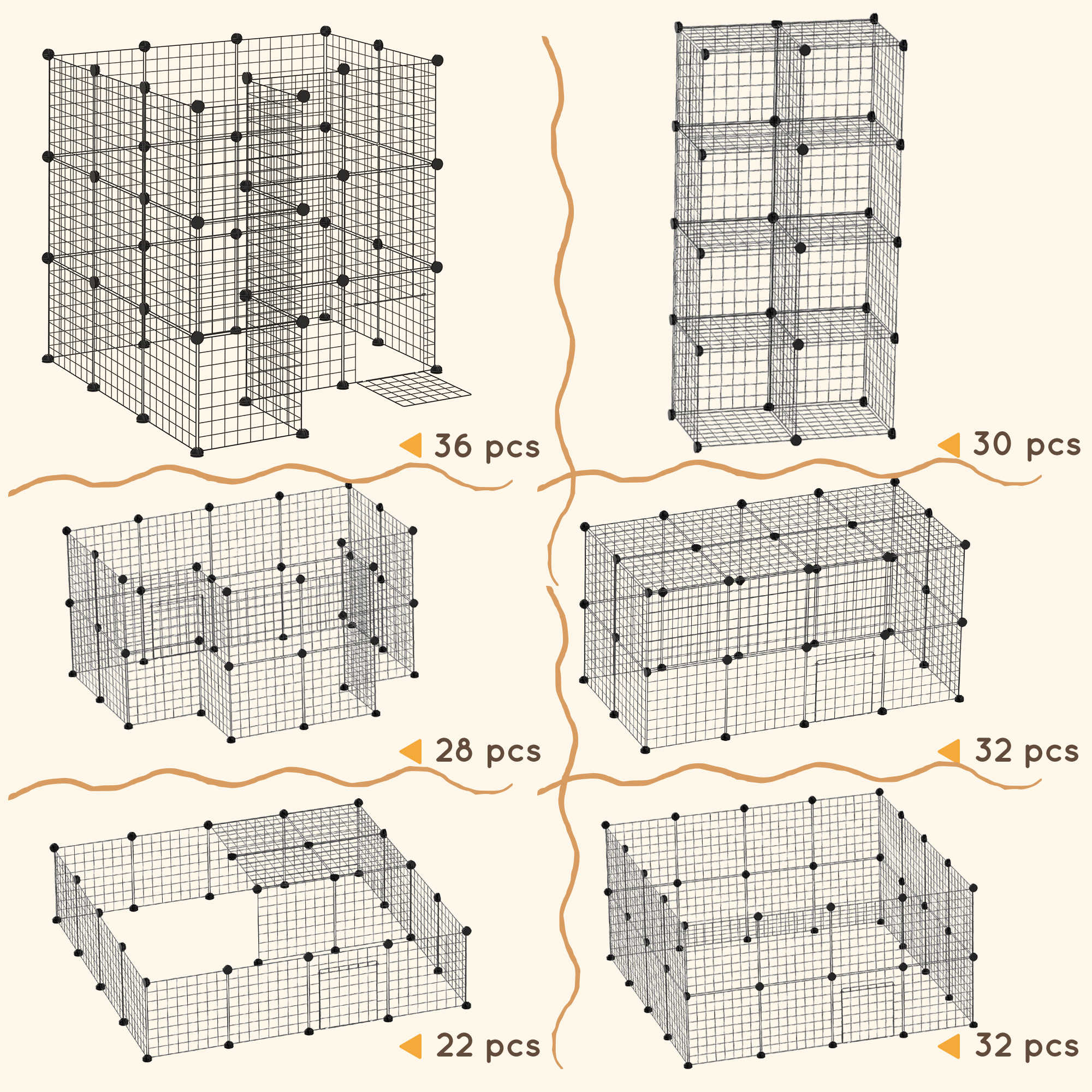 Features: - Chinchilla cage is formed of 36 panels, allowing you to set it to any shape and size required