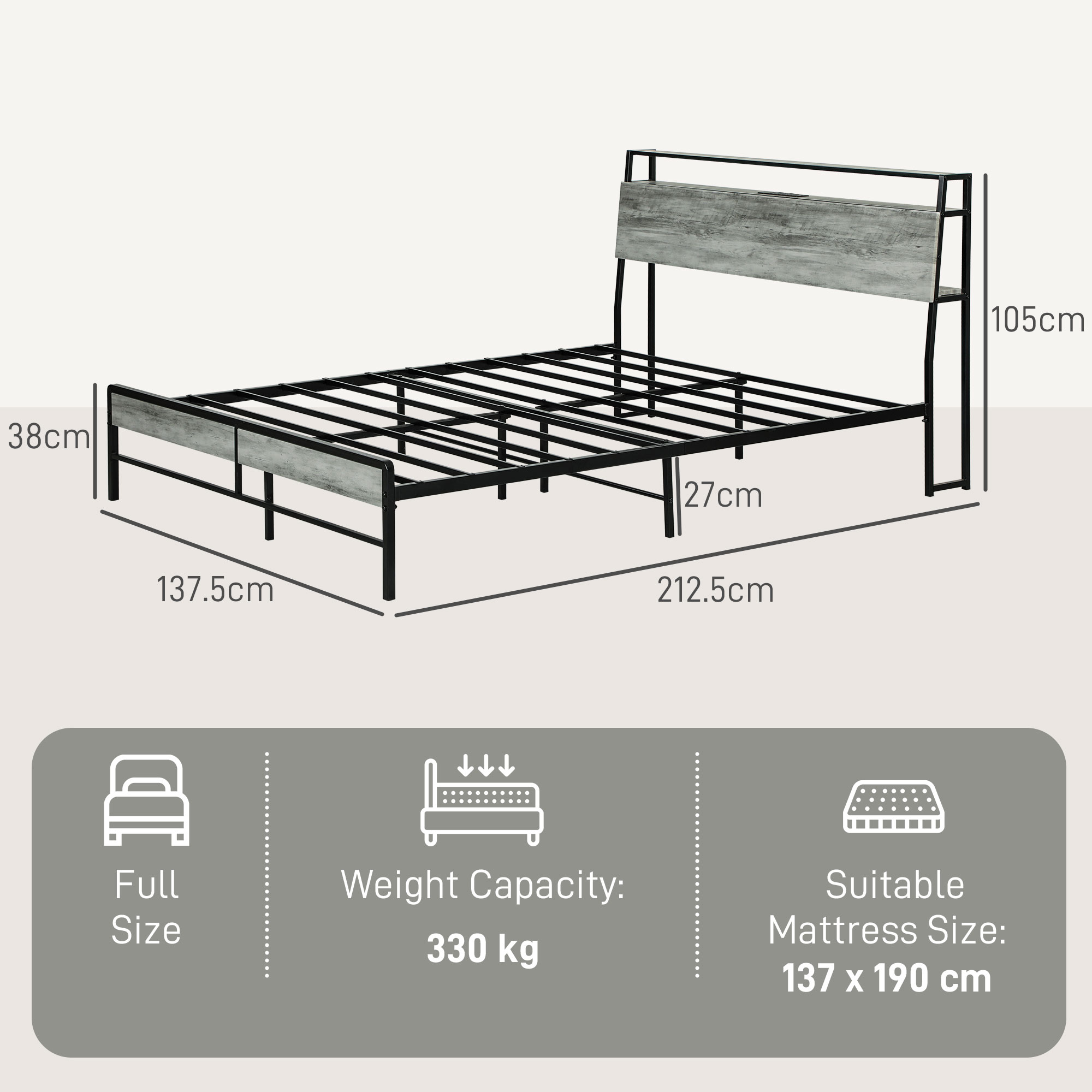 - Headboard Size: 137. 5W x 19. 5D x 105Hcm