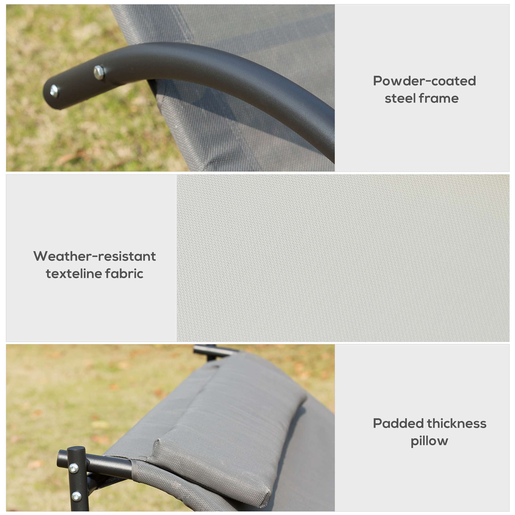 Double the relaxation with this two-person rocking bed from Outsunny. The metal frame is strong for full support, crafted into a curved zero-gravity shape, rocking forwards and backwards gently. The texteline seat holds you properly, and there's a top pillow for comfort. Seat is water-resistant to keep it lightly dry. Take your outdoor relaxation to a new level.