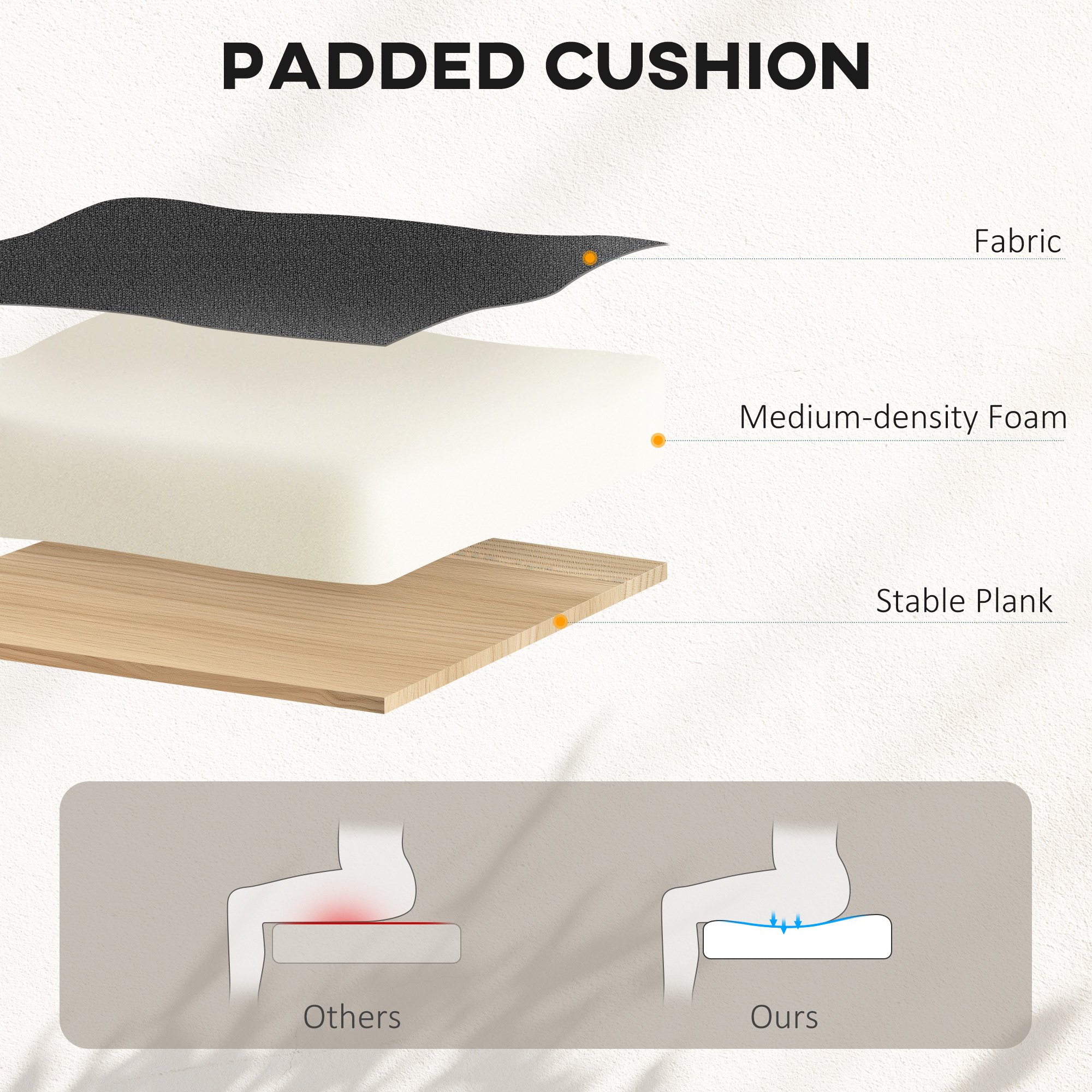 - Mid-density foam padding offers cushioned, supportive seating