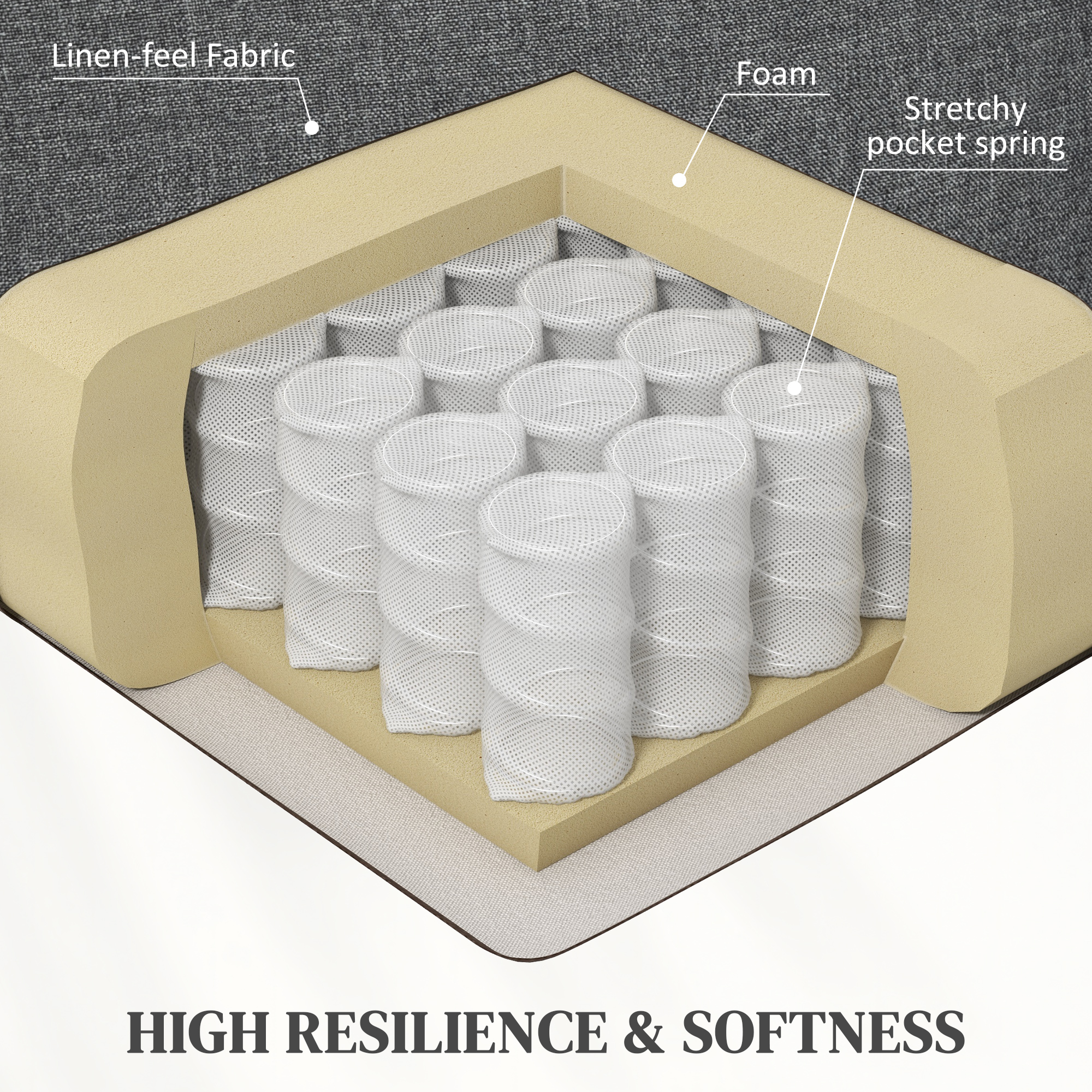 - Materials: Linen (100% Polyester), Sponge, Steel, MDF