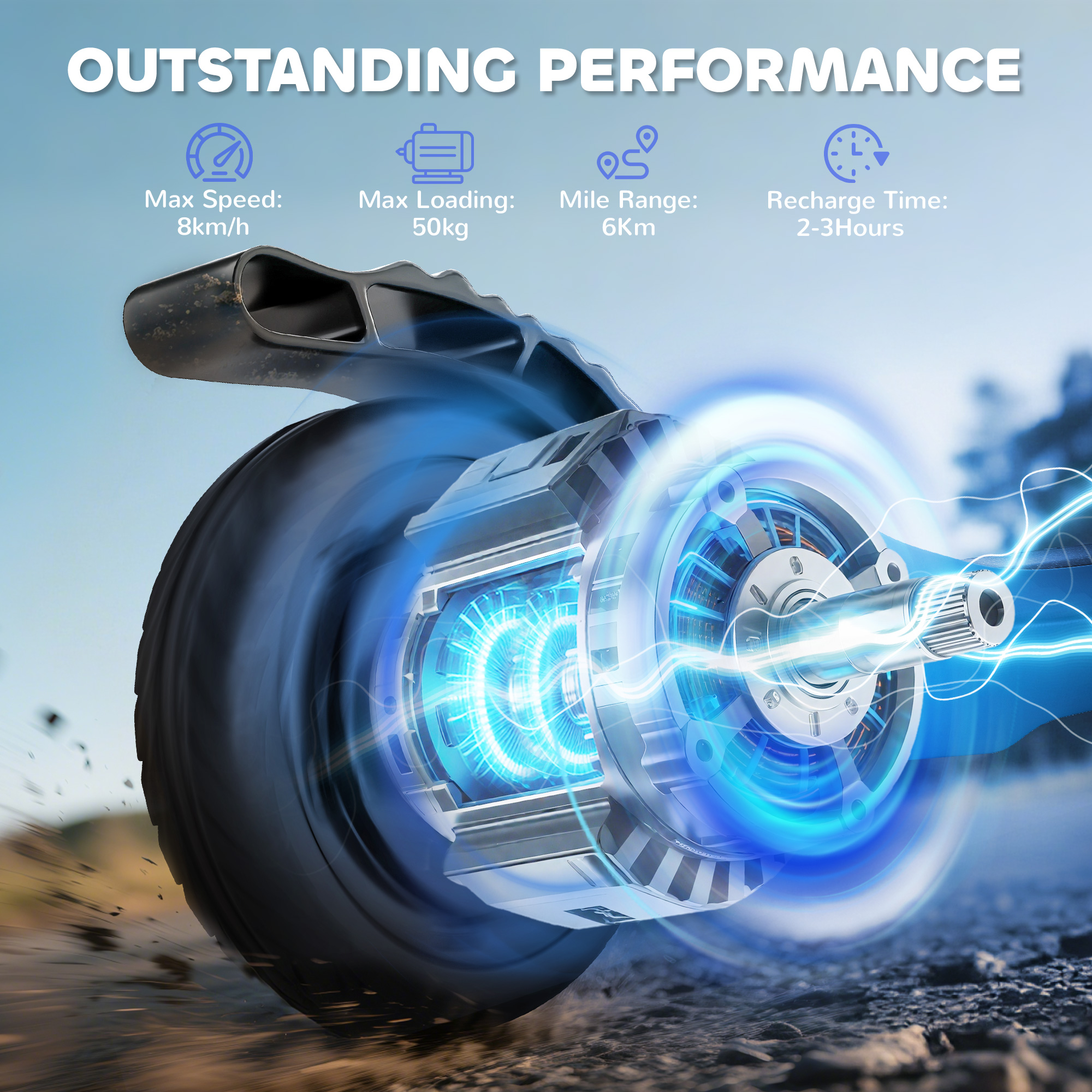 After a 2–3 hour charge, kids will be raring to go – they'll enjoy speeds of up to 8km/h, whilst traveling a maximum 6km on a full charge. To start, press the power button, gently push yourself and gradually press the accelerator. To get off the scooter, there's a brake on the rear wheel for a swift stop. With adjustable handlebars, the scooter stays with your child as they grow.