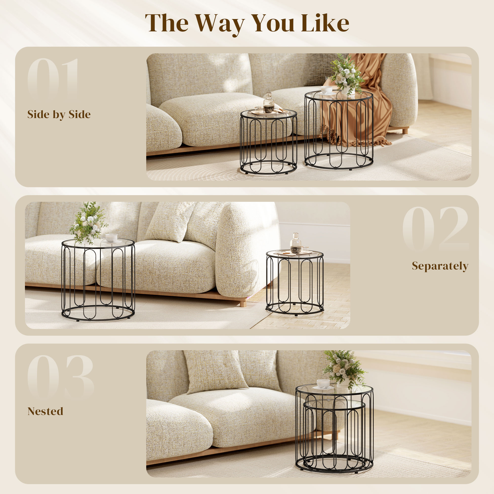 Use these HOMCOM round nest of tables together for a layered look and expanded space, or separately, to place in different areas in the home. An elliptical metal ring frame, with a tempered glass top, makes this nesting tables set a sleek and bold addition to every space.