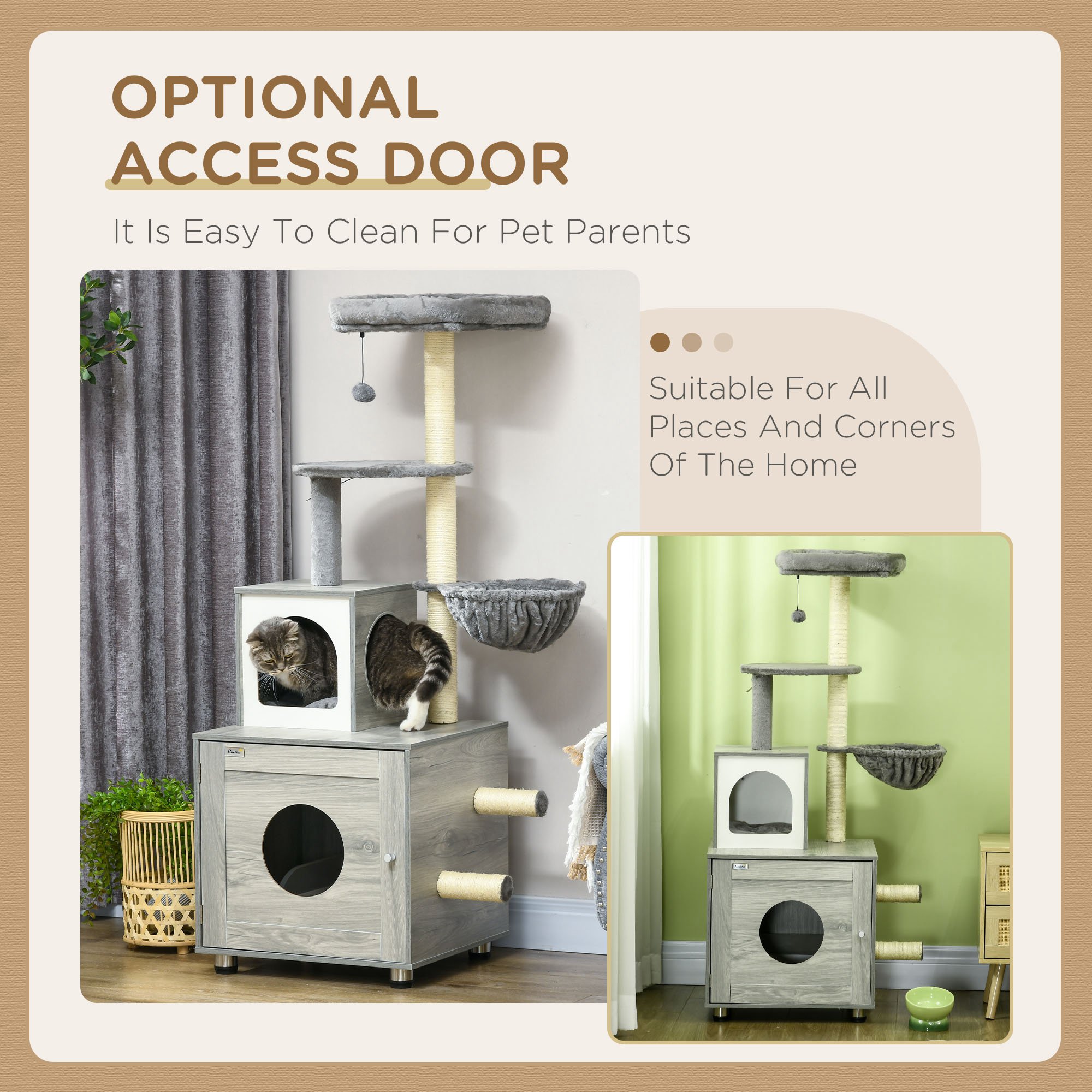 Features: - 2 in 1 design, a cat tree and a cat litter box