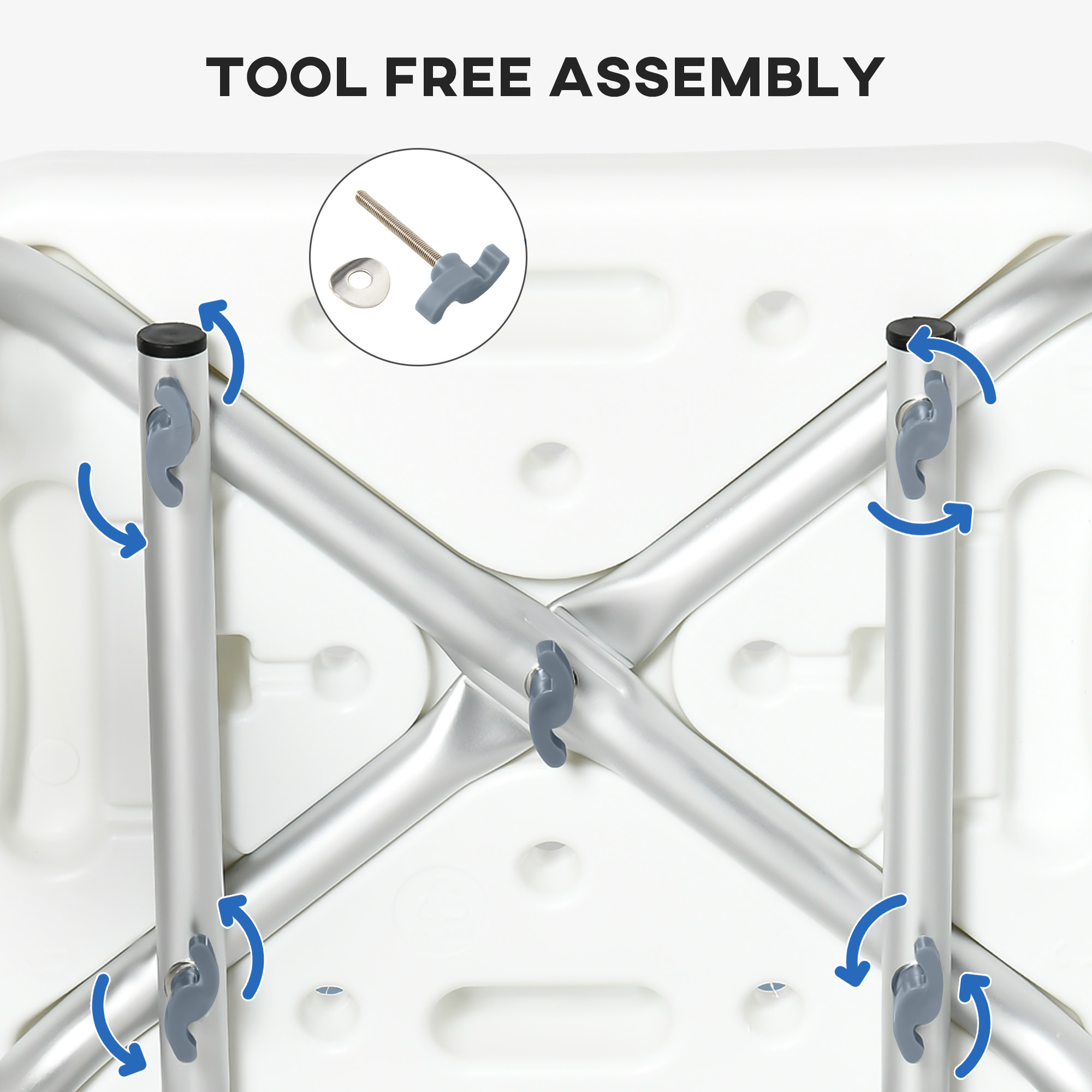 Made for assistance in the shower or bath, this shower chair for the elderly from HOMCOM is great for the elderly, injured or those who require extra assistance whilst showering or bathing. Adjustable to six different heights, this bath chair helps you find the most comfortable and safe position to sit. Its padded seat, tall back and tall arms make it comfortable and supportive. It's finished with four large suction foot to stick to wet floors.