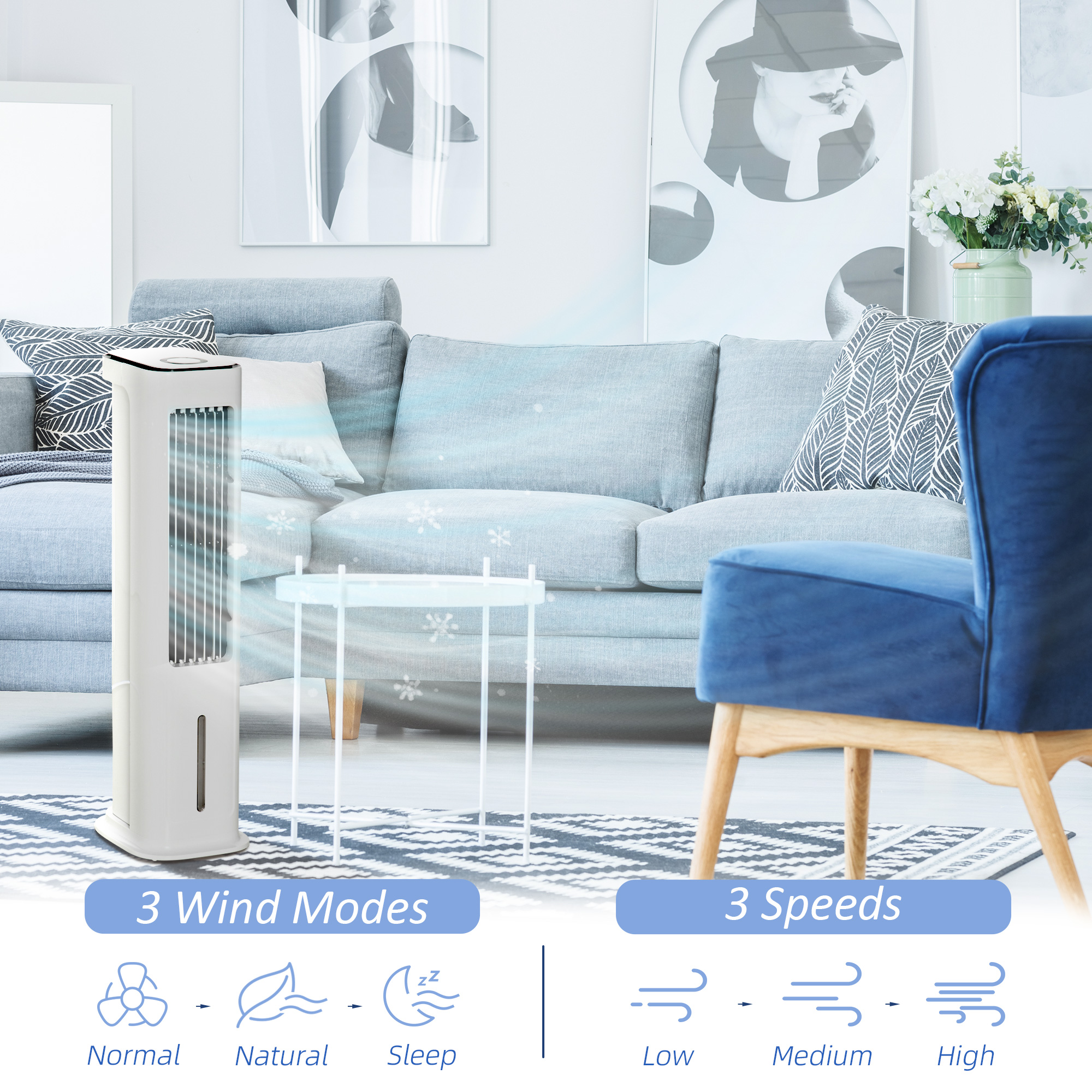 Keep your cool this summer with this cold air fan from HOMCOM. The portable air cooler comes with ice boxes so you can make the air colder and more refreshing. You can change between low, medium and high speeds and adjust between normal, natural and sleep mode to set it how you like. The timer function is useful for using at night time. The air conditioner fan swings from left to right so it covers a larger area.