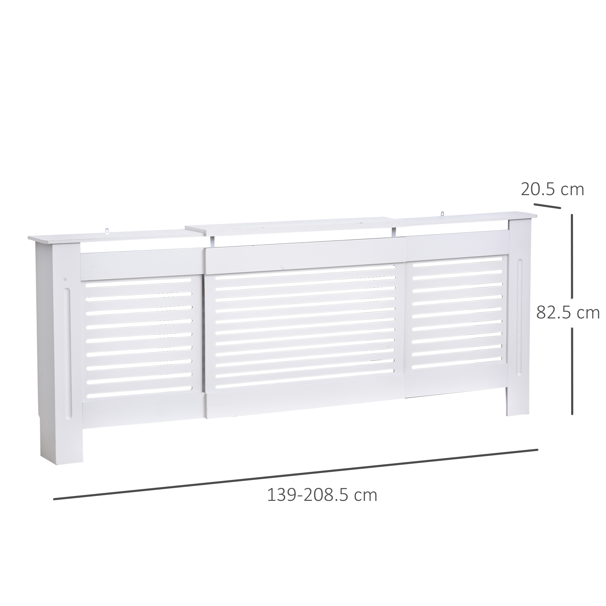 This modern and contemporary styled radiator cover from HOMCOM is a great way to enhance the look of any room. Most radiators are unsightly and this can add a touch of elegance. Made from white painted MDF, it is ready to be assembled and installed without the need to add any finishing touches. It is also a great way to keep your children and pet safe from touching the hot radiator surface and causing injuries. You can adjust its length easily to suit your radiator size. The slatted design allows airflow efficiently without restricting the heat to be radiated to the room. This is an elegant and practical addition to any home and office.