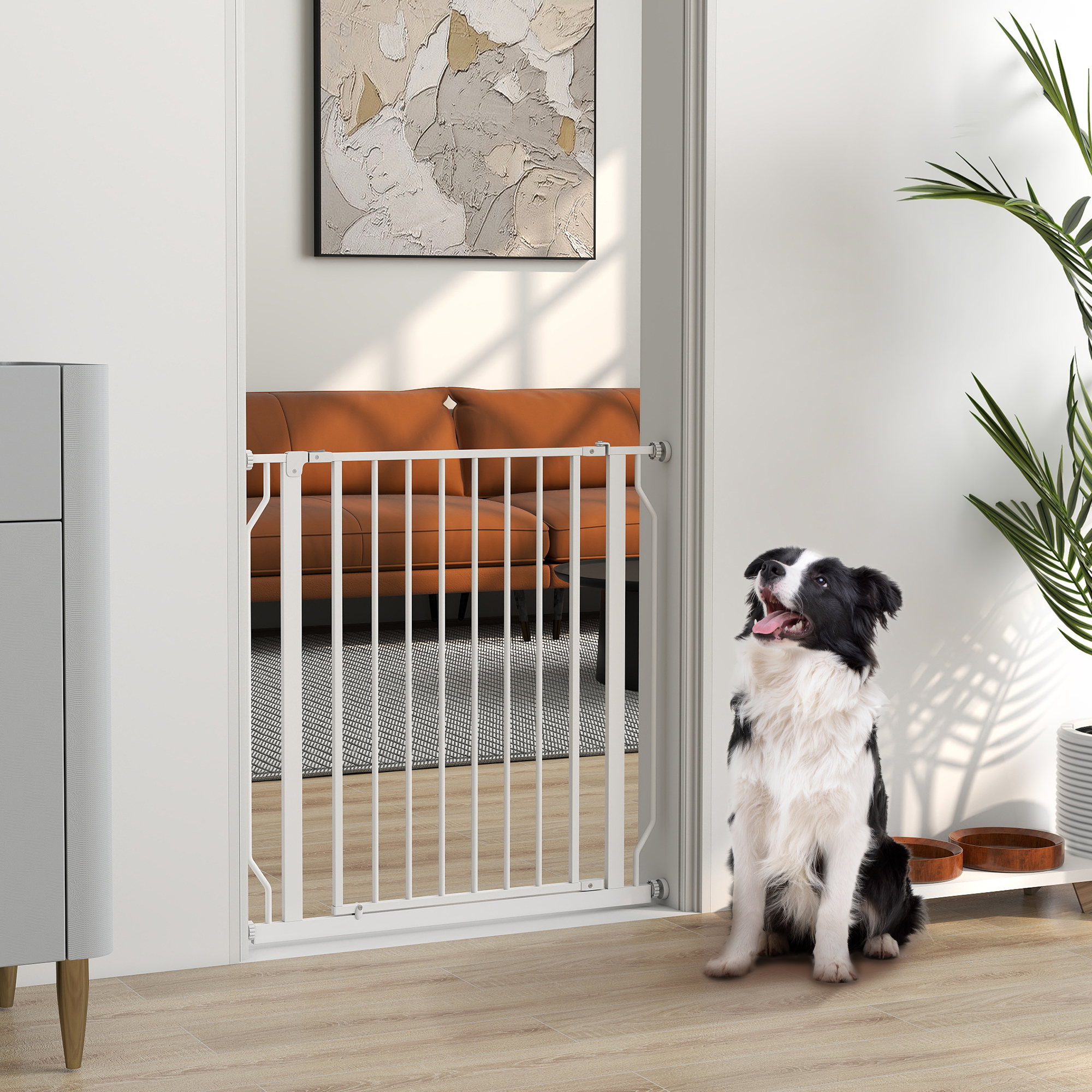Need to keep pets away from certain places? This PawHut safety gate does the job. Suitable for hallways, doorways and staircases, it has an adjustable width of 75-85 cm – perfect for different sized openings. Made from durable steel, it stays firmly upright when in use – it can also be pressure-mounted, making it easy to set up; a safe and effective way to stop pets from going where they shouldn't.
