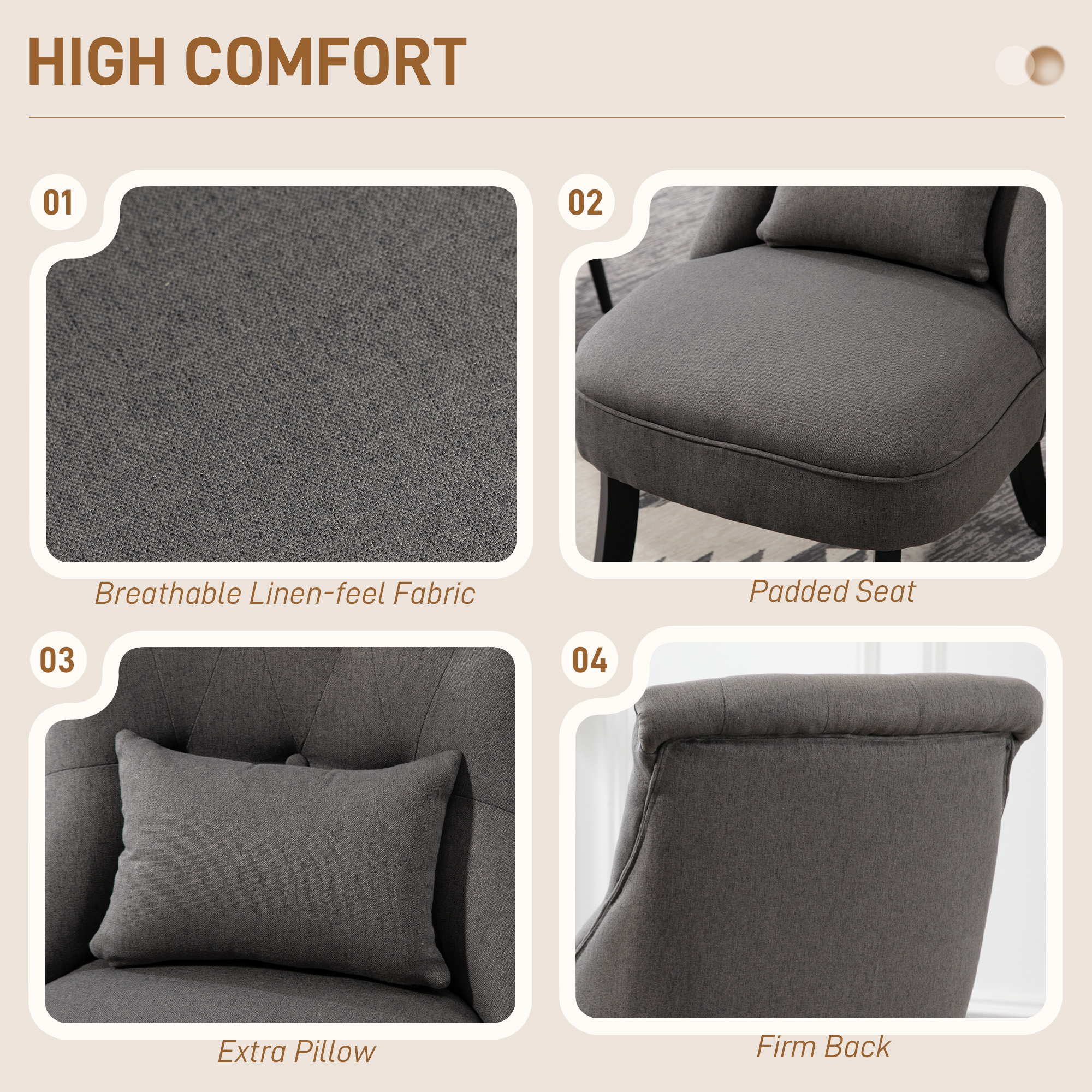 Sink into something comfortable without sacrificing on your precious home space with this accent chair, from HOMCOM. Linen-look fabric, the curved wooden legs and delicate button tufting on the back evokes a vintage style - a statement in any setting. Soft cushioned seat and curved backrest for comfort and support. Something different for this season and beyond.
