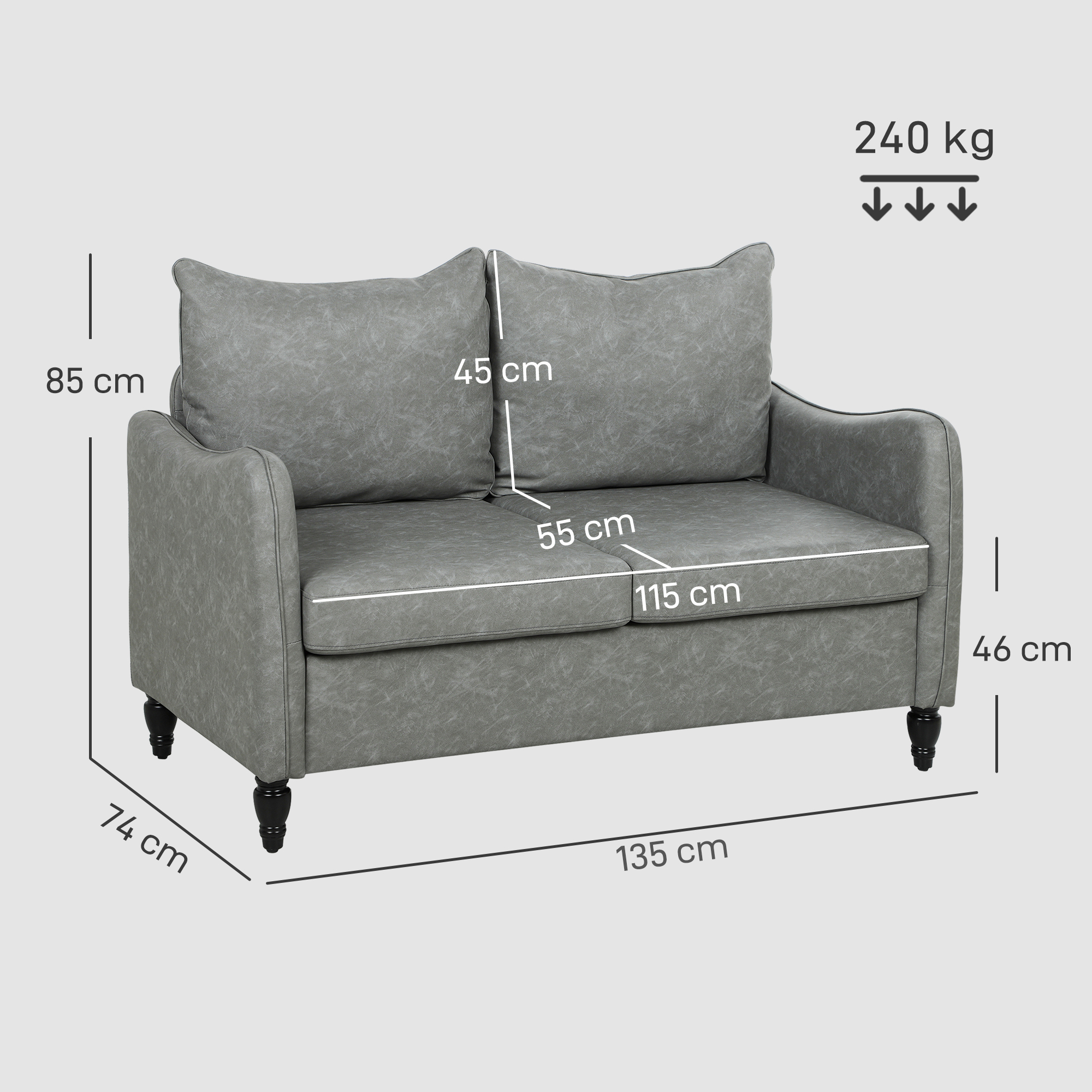 Unwind in comfort and classic style with this HOMCOM two-seater sofa. Wrapped in faux leather in marble effect, this piece will look great in many different interior styles - use it in the living room, bedroom and beyond. Filled with thick padding, you can sure you'll love lounging in this sofa all afternoon long!