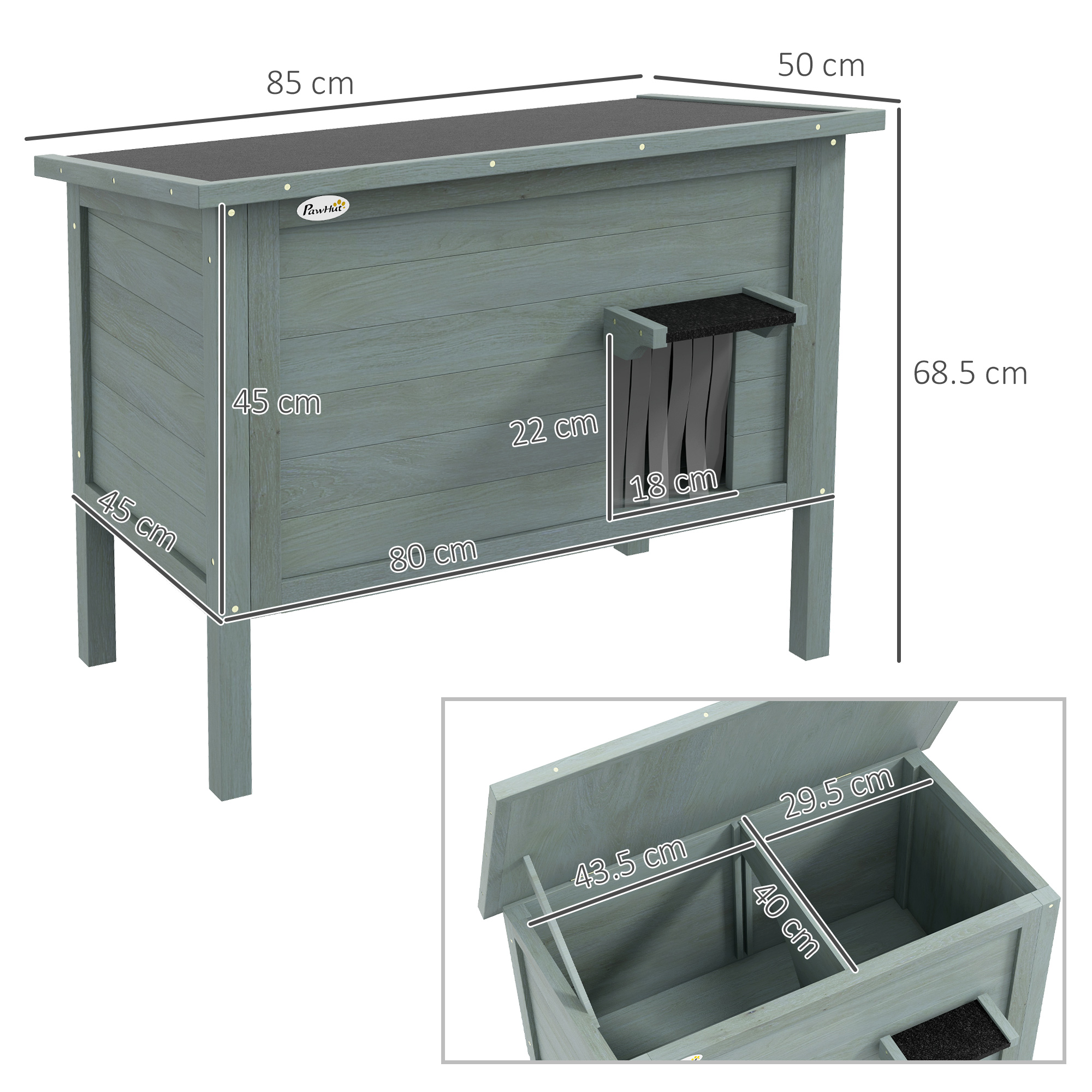 Invest in your pet's happiness with our PawHut outdoor cat house. Crafted for cosiness, its foam insulation offers warmth, whilst the slanted asphalt roof shields from unpredictable weather – suitable for outdoors. With a middle panel entrance and a front door, feline friends can come and go as they please. Gift your pet a serene sanctuary, turning your outdoor space into a wonderful haven.
