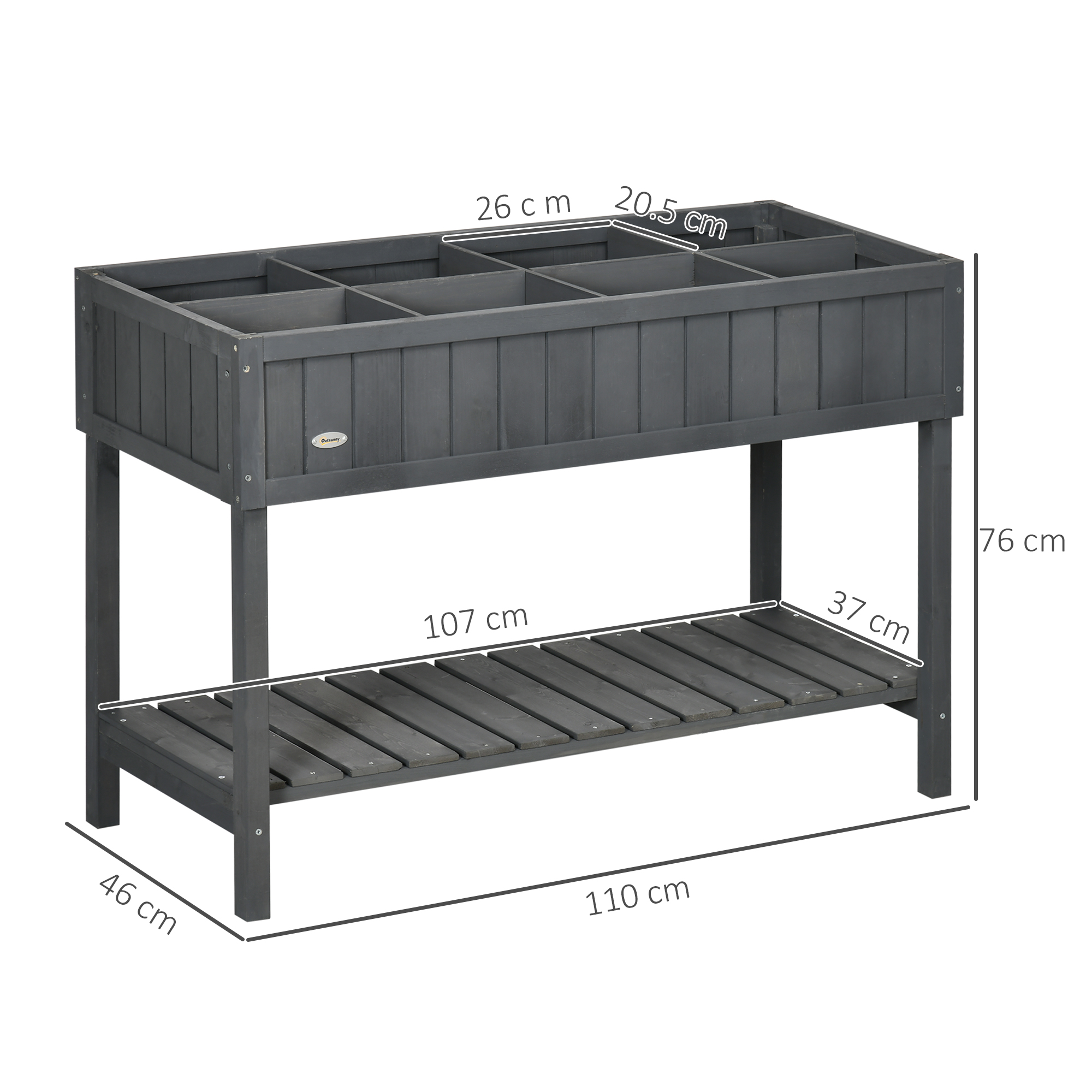 Give your flowers, plants and herbs their own pride of place with Outsunny raised beds for garden. Made from fir wood and covered with water-resistant paint all over to ensure it is suitable for use both indoors and outdoors. Eight separate cubes give you plenty of separate space to organize and display. Elevated legs are used for keeping away dirt, and the bottom shelf for keeping tools and equipment close to hand. The perfect place to show off your raised vegetable planter with pride!