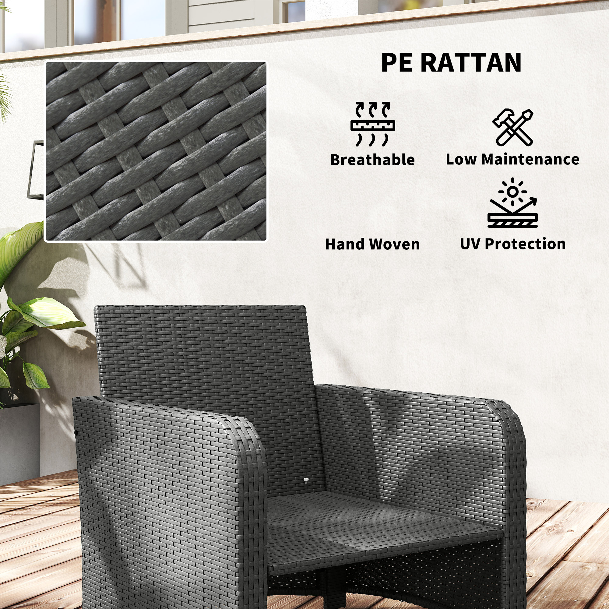 - PE rattan is UV-resistant and anti-fading for reliable outdoor use
