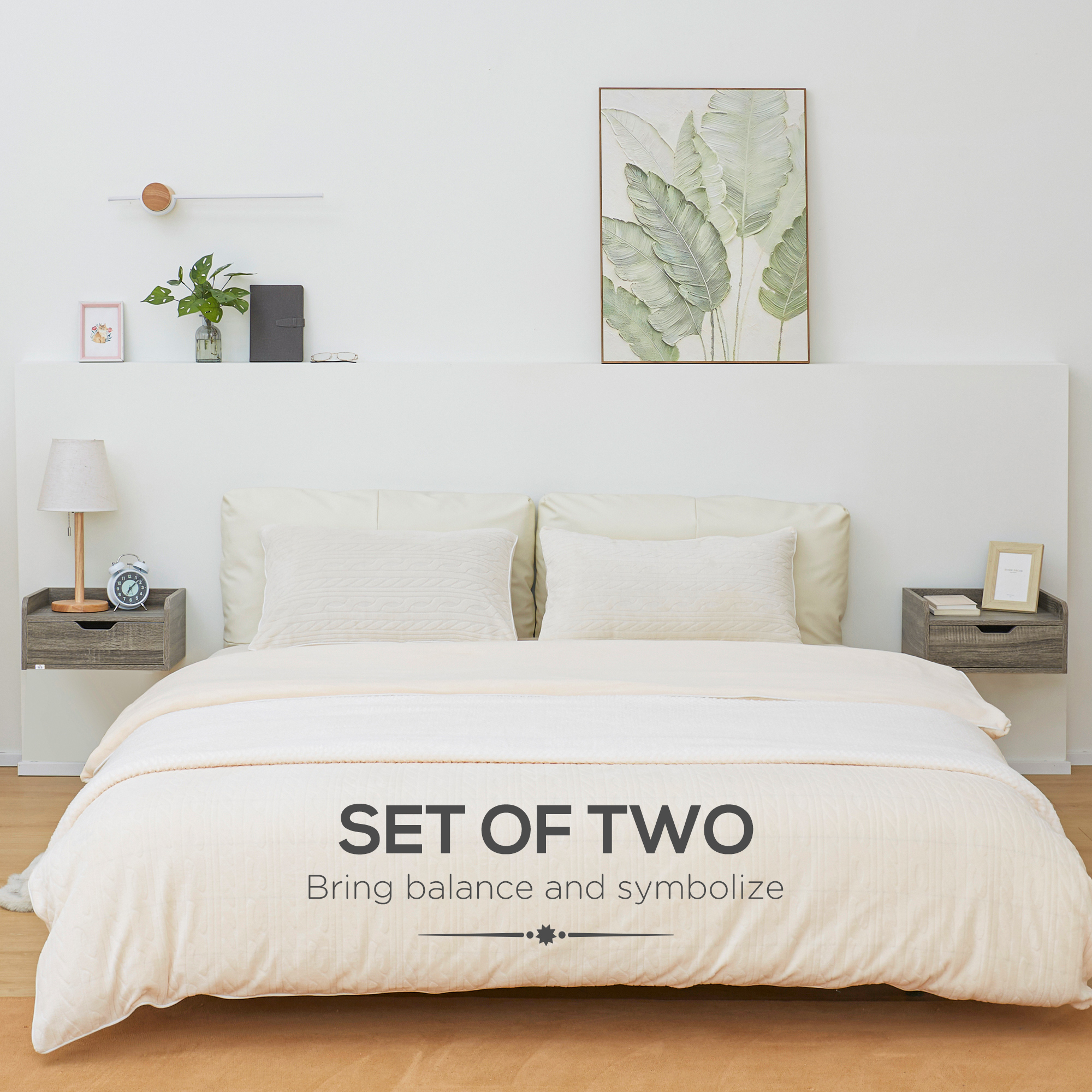Go for classic furniture styling for bedtimes. Go for these two HOMCOM bedside tables. The firm particle board structures come in a wood-effect look - leave natural or customise how you want. Both tables are floating - individually fix to a position of your choice. With a pull-out drawer and flat top shelf, there is plenty of storage room for bedtime essentials, a clock and lamp. Package comes as a set of two.