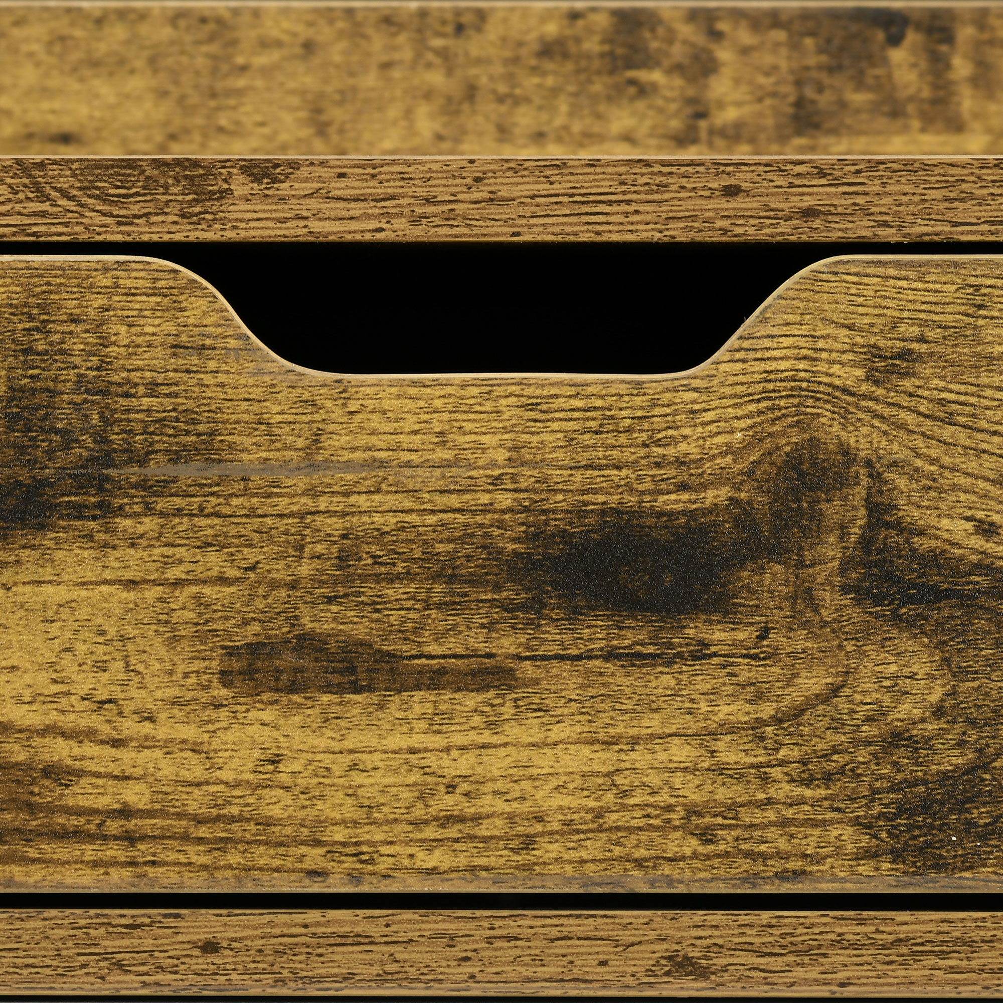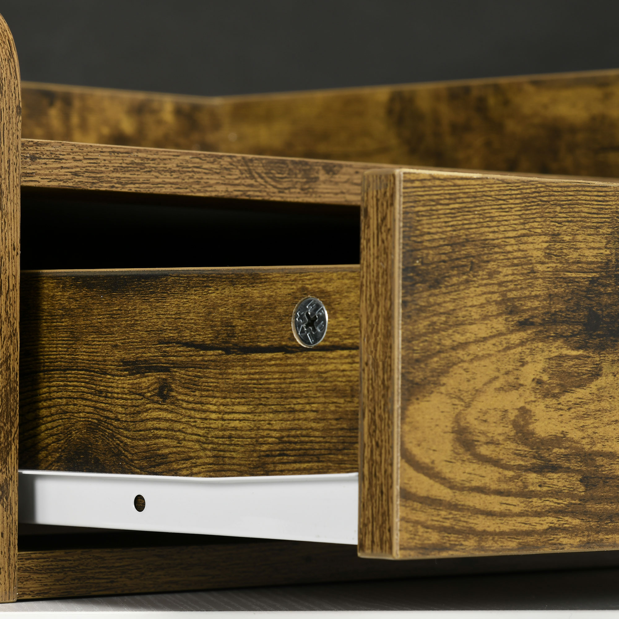 - Firm particle board structure, in a sleek rustic brown finish