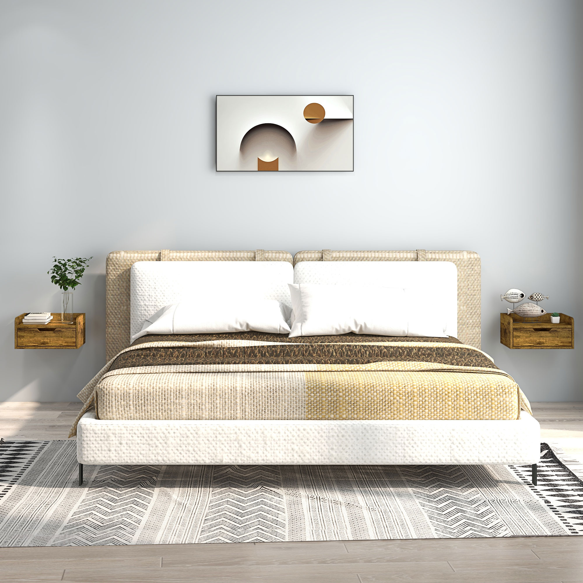 Features: - Floating design: fix each bedside table to a position you want
