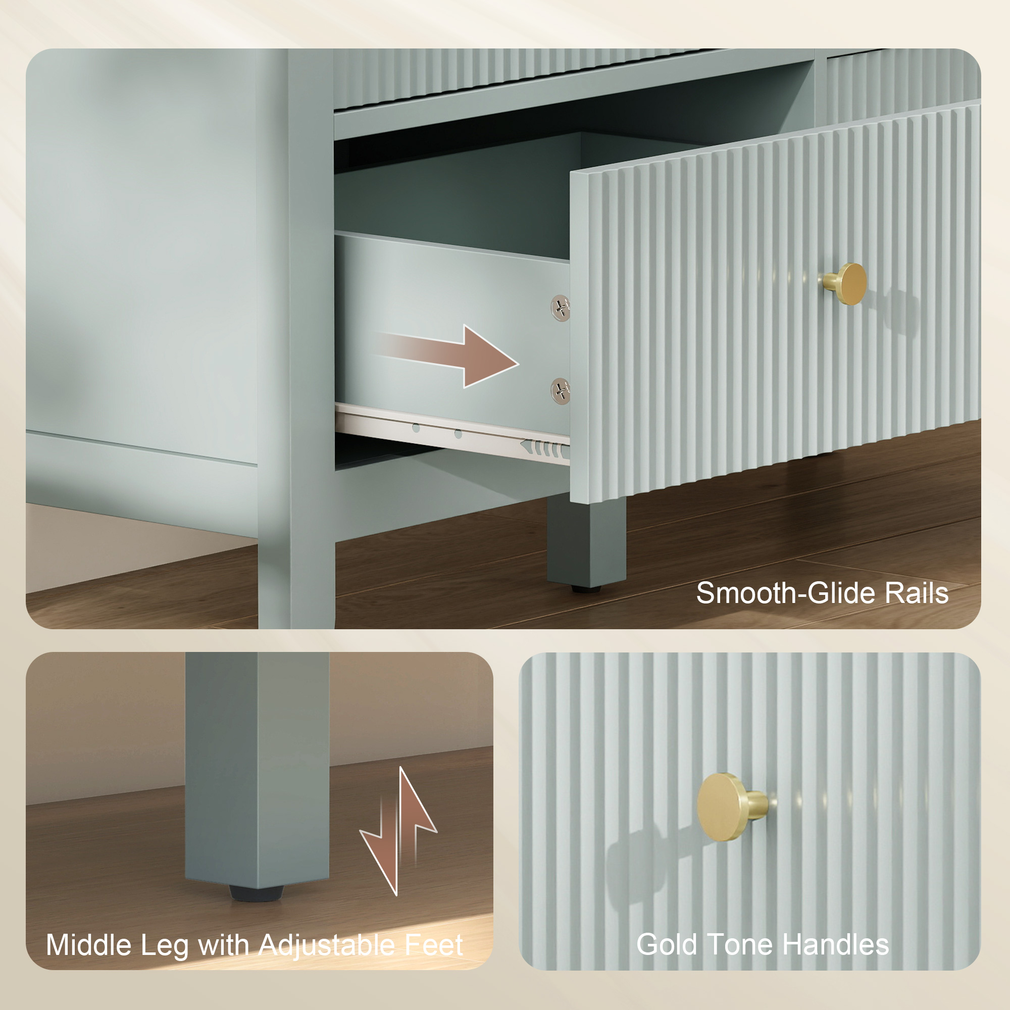 Features: - Fluted drawer fronts and Gold Tone handles bring refined modern elegance to any room