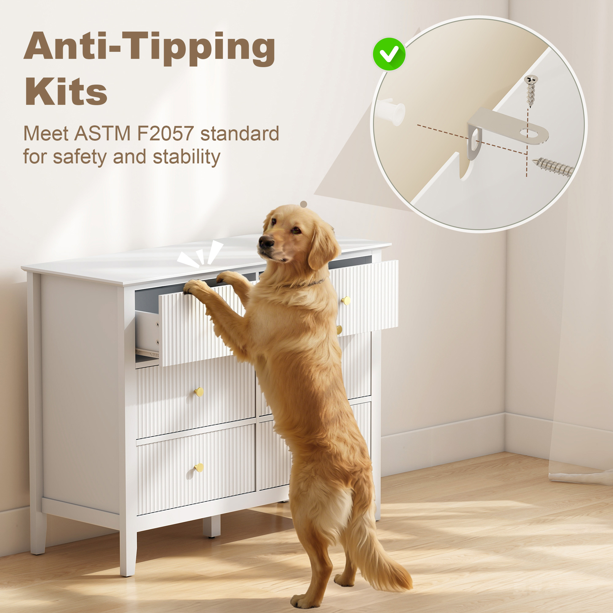 When clutter steals the calm from your bedroom, the HOMCOM chest of drawers restores order and elegance in one move. Six drawers and a spacious top create a haven for clothes and essentials, while fluted fronts and gold-tone handles bring modern charm. Built with a reinforced frame, adjustable feet and anti-tipping safety, this dresser keeps your home beautifully balanced, organised and effortlessly stylish.