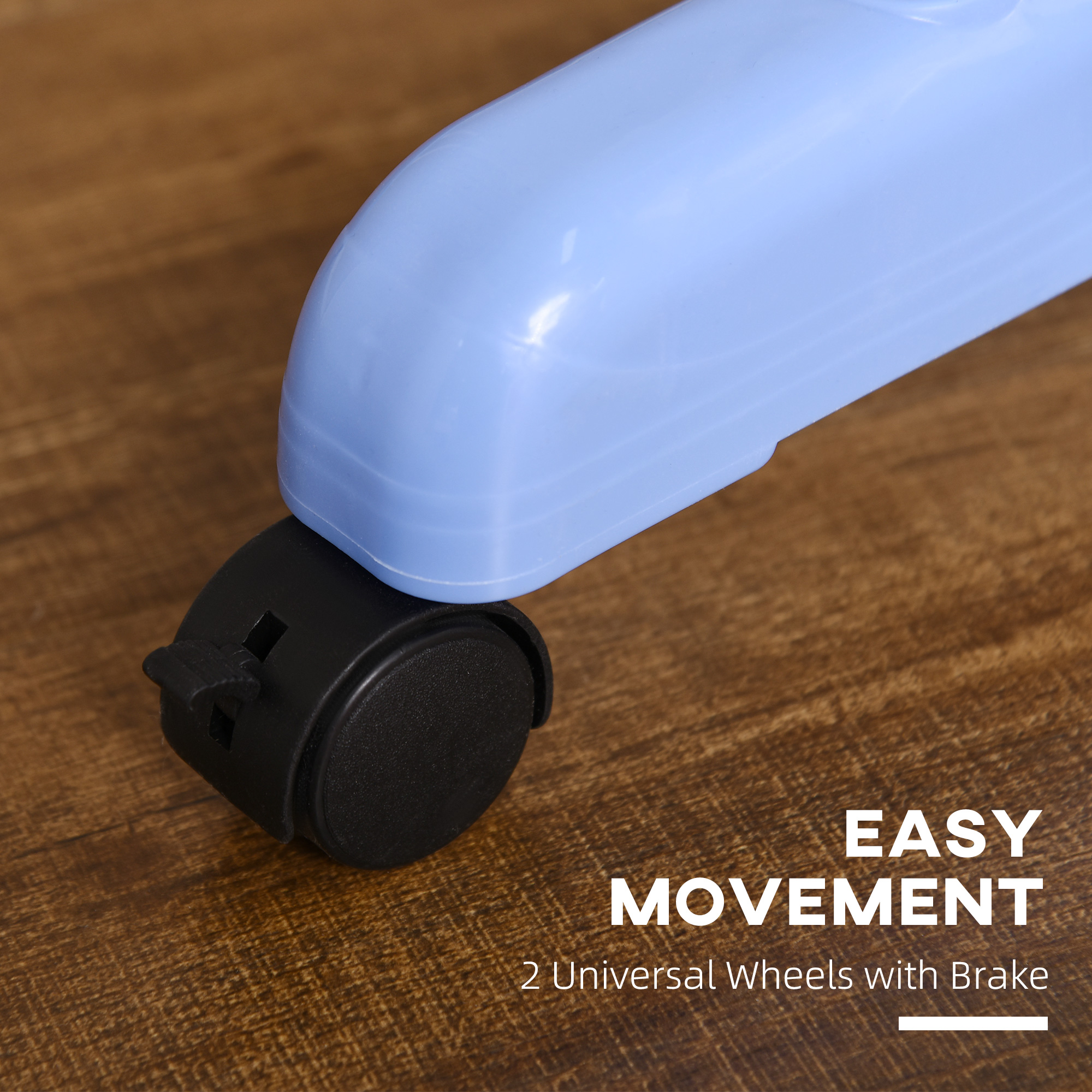 - Four wheels to move easily, with two brakes
