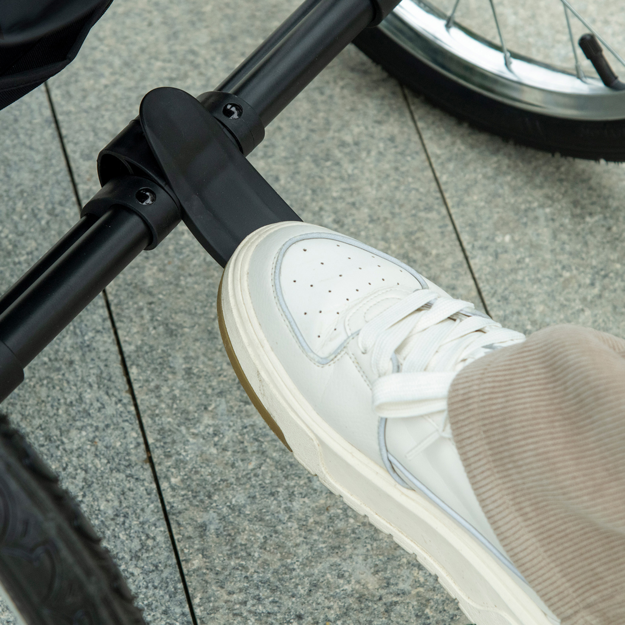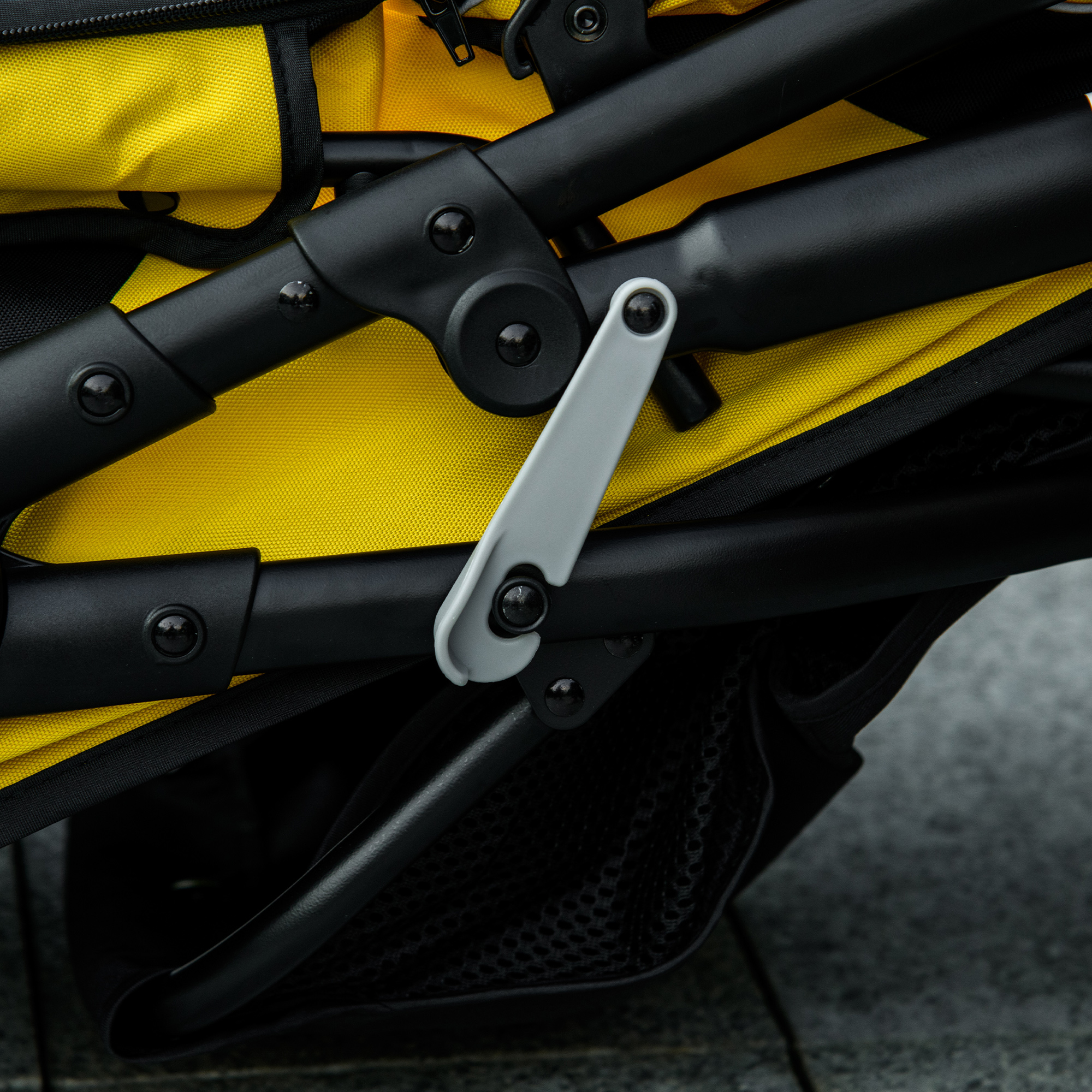 - Safety leashes, reflective strips and a rear footbrake provide safety and security