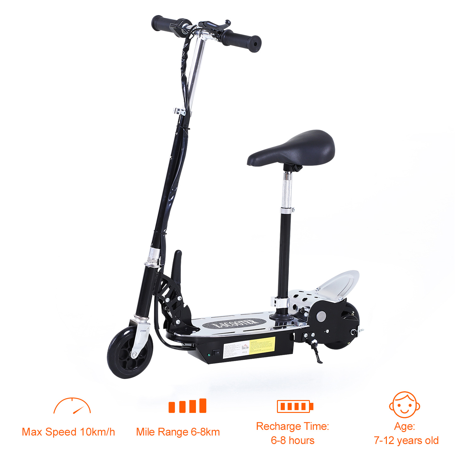 HOMCOM designed this scooter suitable for teens to ride around in style. The metal frame construction provides added durability and minimum maintenance. The charge holds up to 6-8Hrs while offering a distance mileage up to 6-8km in 1 charge. The foldable mechanism makes it easy to store or carry when not in use.