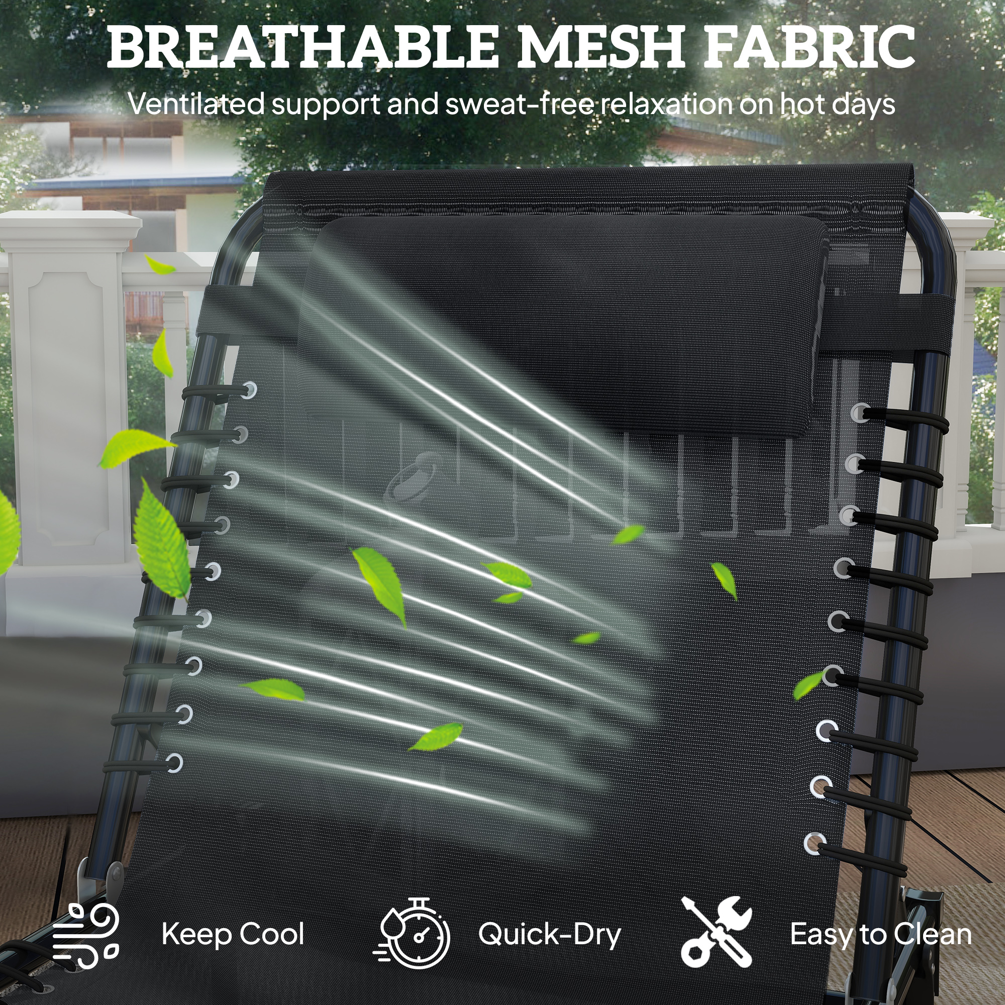 - Mesh sling fabric offers excellent breathability