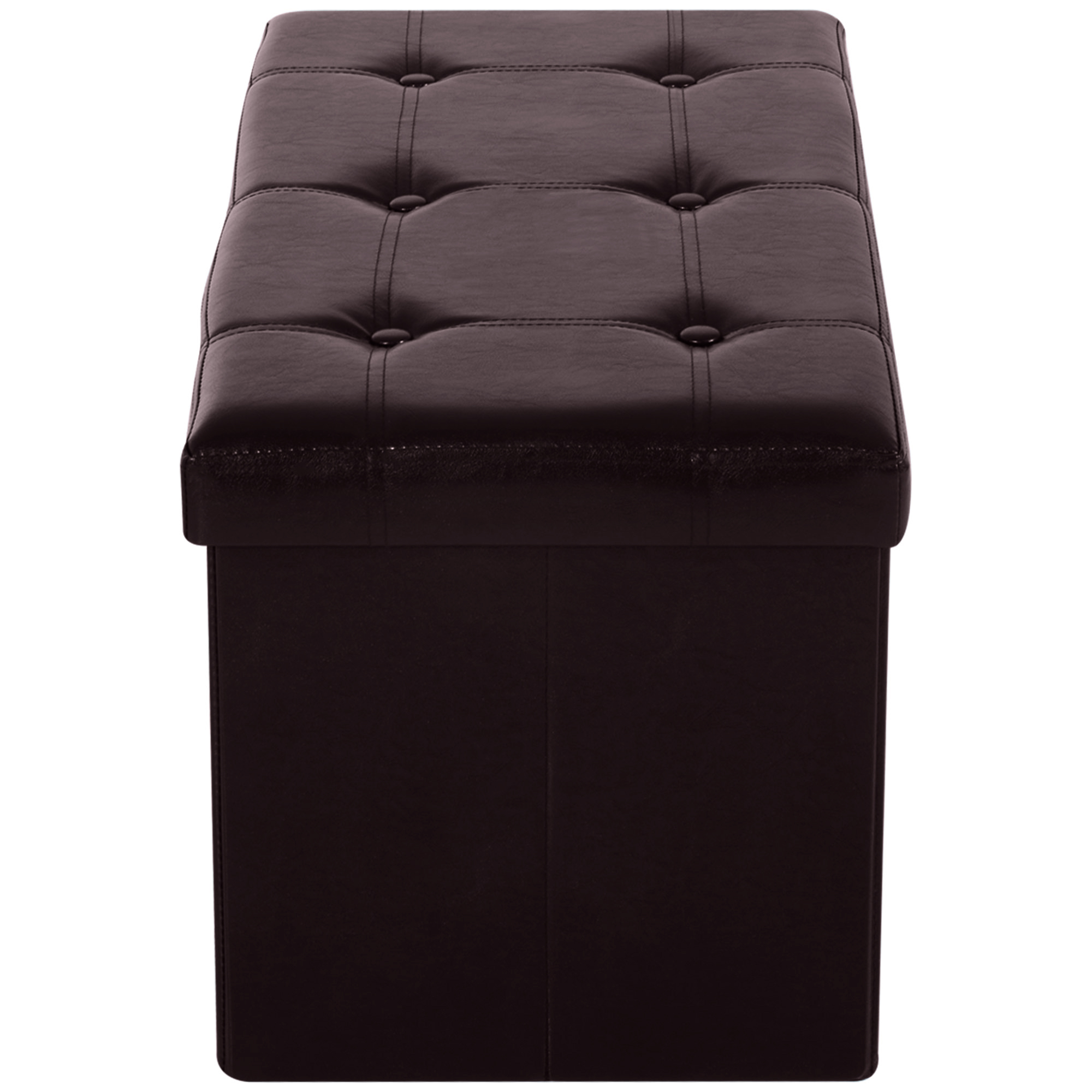 This HOMCOM collapsible ottoman made from faux leather is a great addition to your storage needs, the top has tufted design which is elegant and stylish. With a wooden frame construction to give it strength and stability. It can be used as a footstool and storage 2 in 1 and would compliment any room in your home. It has a foldable design so when not in use it can be stored away.