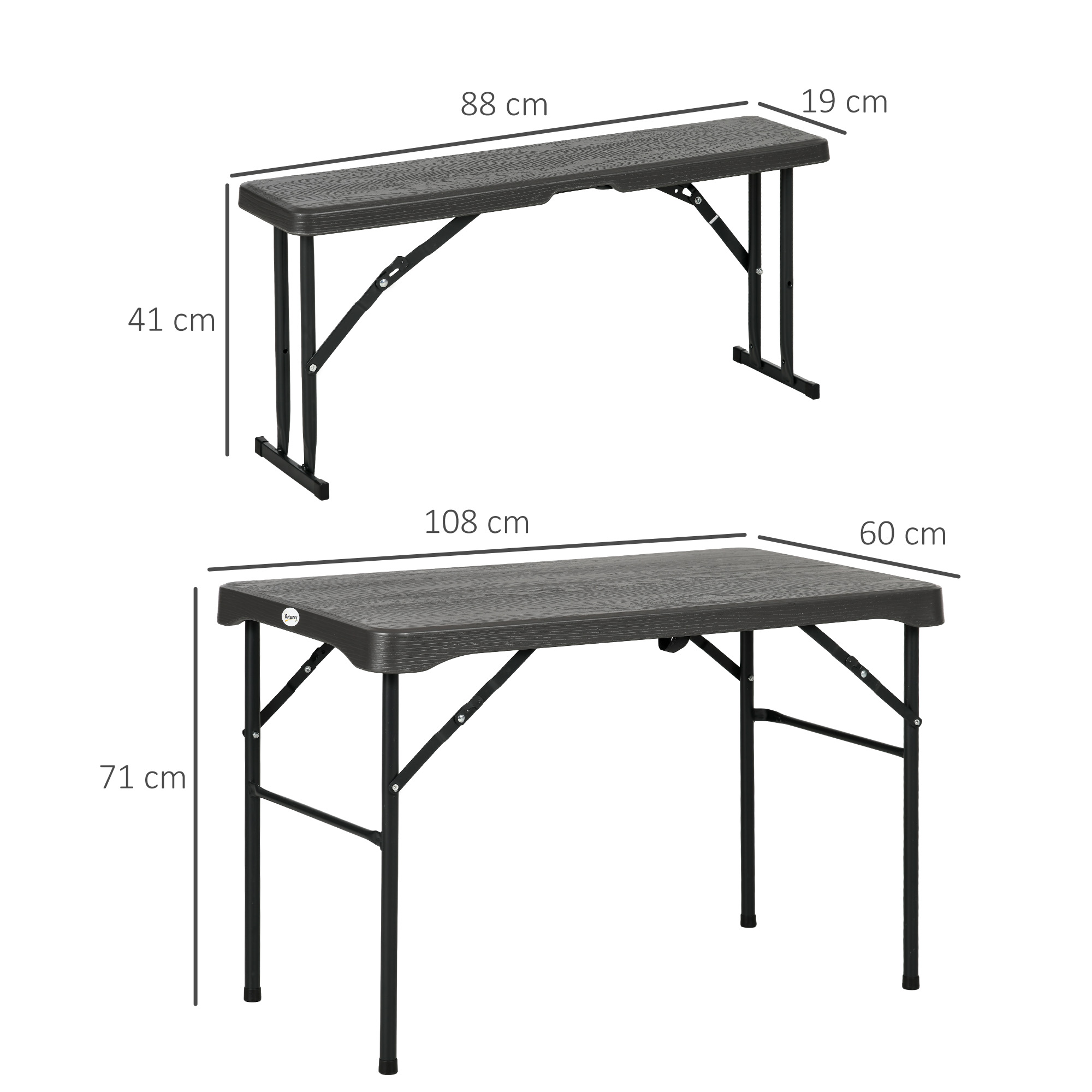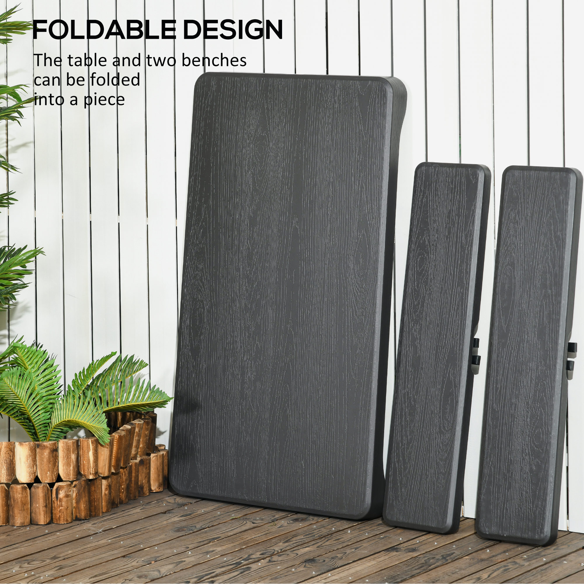 Use the lightweight folding innovation of a German-style picnic table from Outsunny. This three-piece outdoor dining set is foldable, easy to carryand heavy-duty. Made of a strong steel frame and waterproof HDPE, that allows 240kg per bench, set up seating for four. Put it in the garden for parties or picnics. Whether you're putting on an October fest or just need outdoor seating this set is the solution.