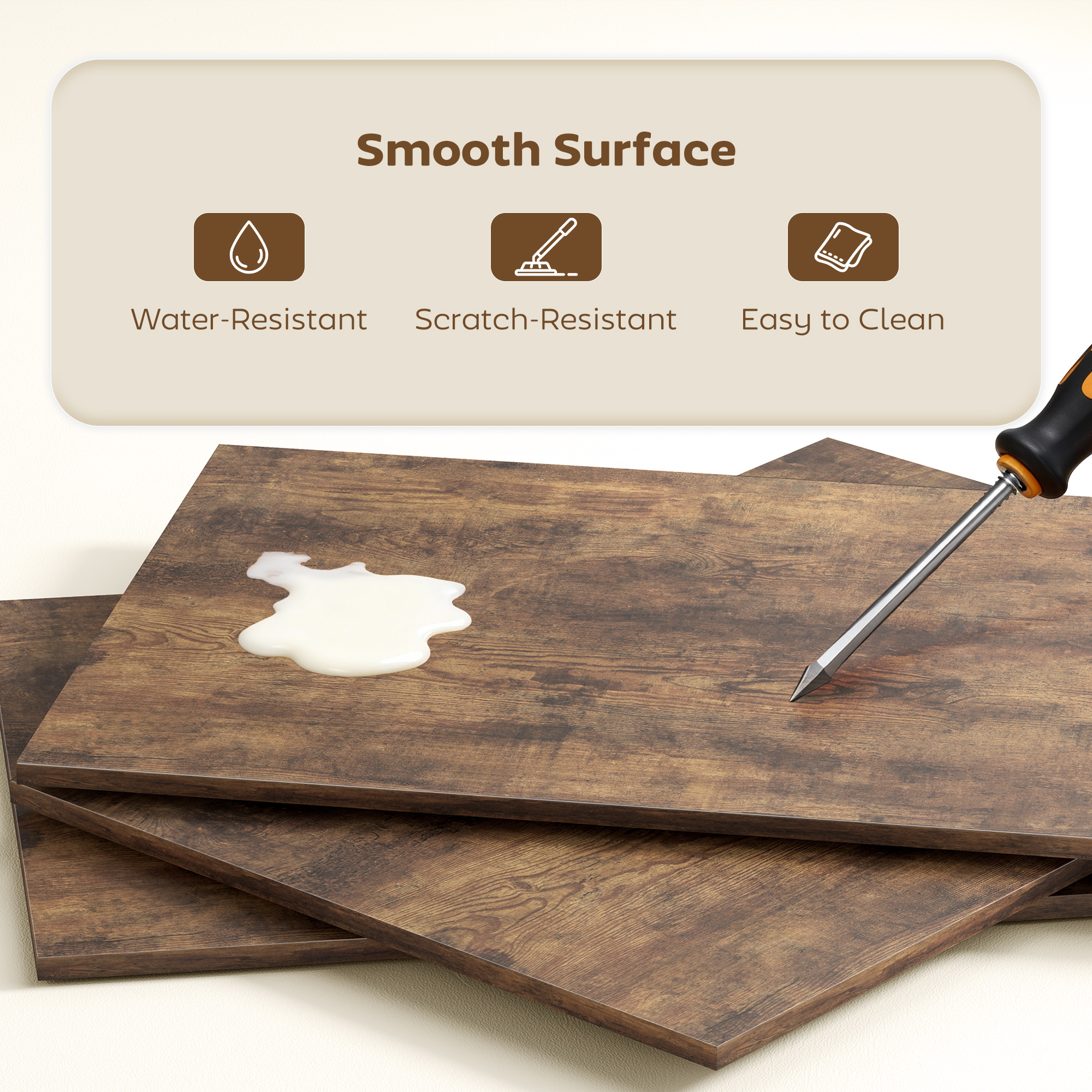 - Smooth and lightly-protective melamine coating