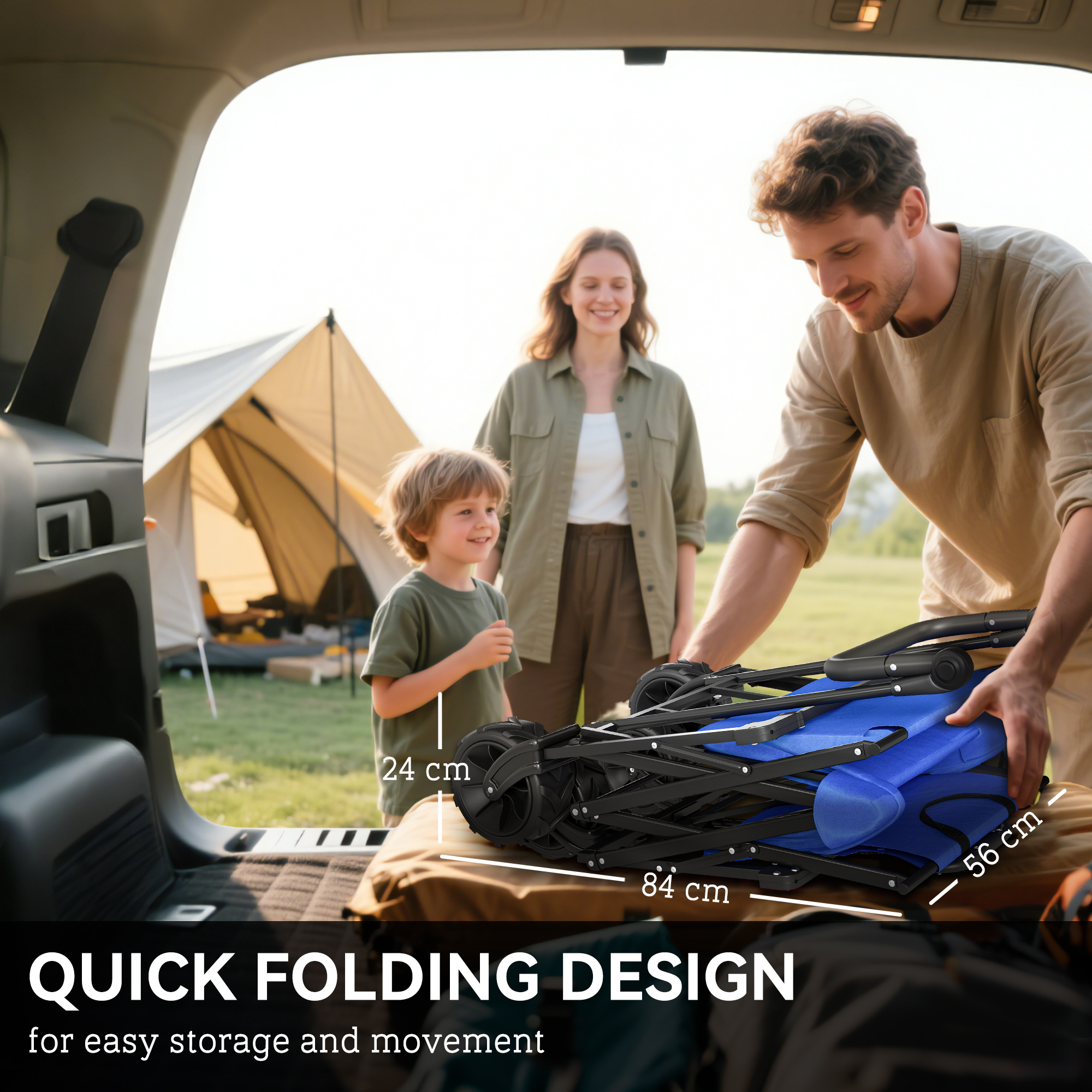 - Folding Size: 56L x 24W x 84Hcm