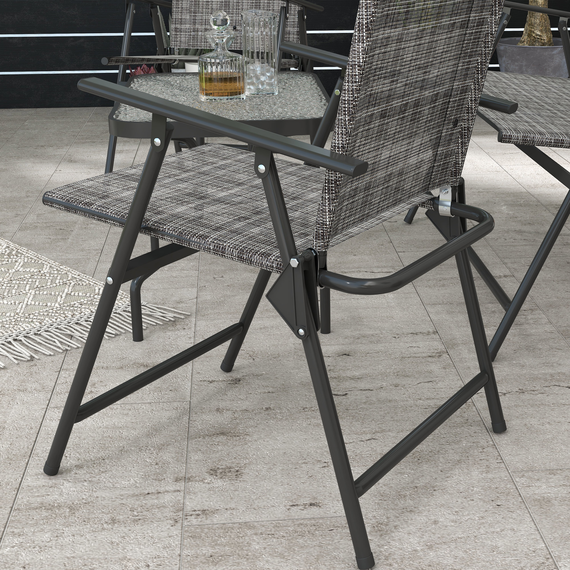 For rest and relaxation outdoors, go for this Outsunny four-piece sofa set. The steel frames ensure a strong core, with breathable mesh fabric panels to hold you comfortably. The tempered glass tabletop ensures a safe holding place, plus a sleek look. Comes with two chairs, a loveseat and small coffee table.