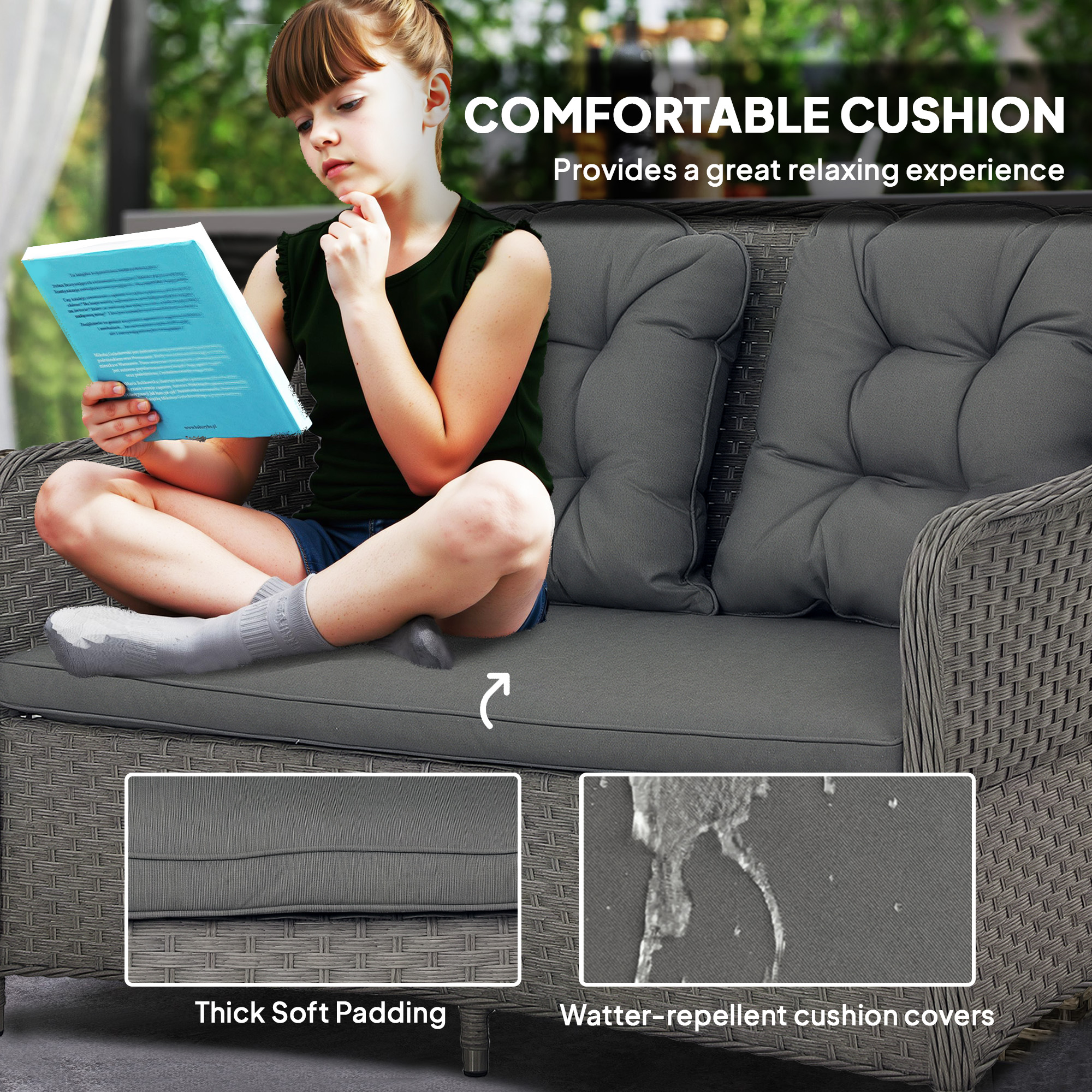 - Aluminium frame for a strong core, wrapped in durable plastic rattan