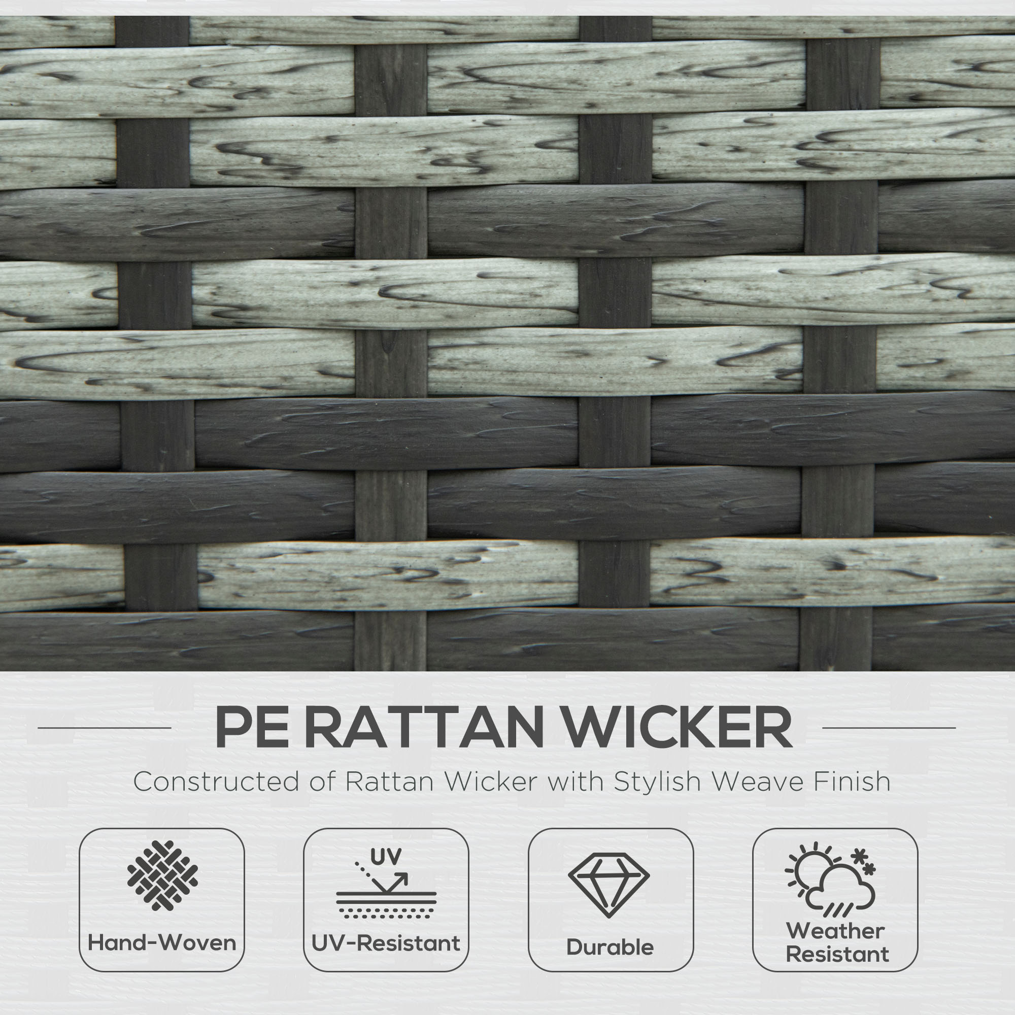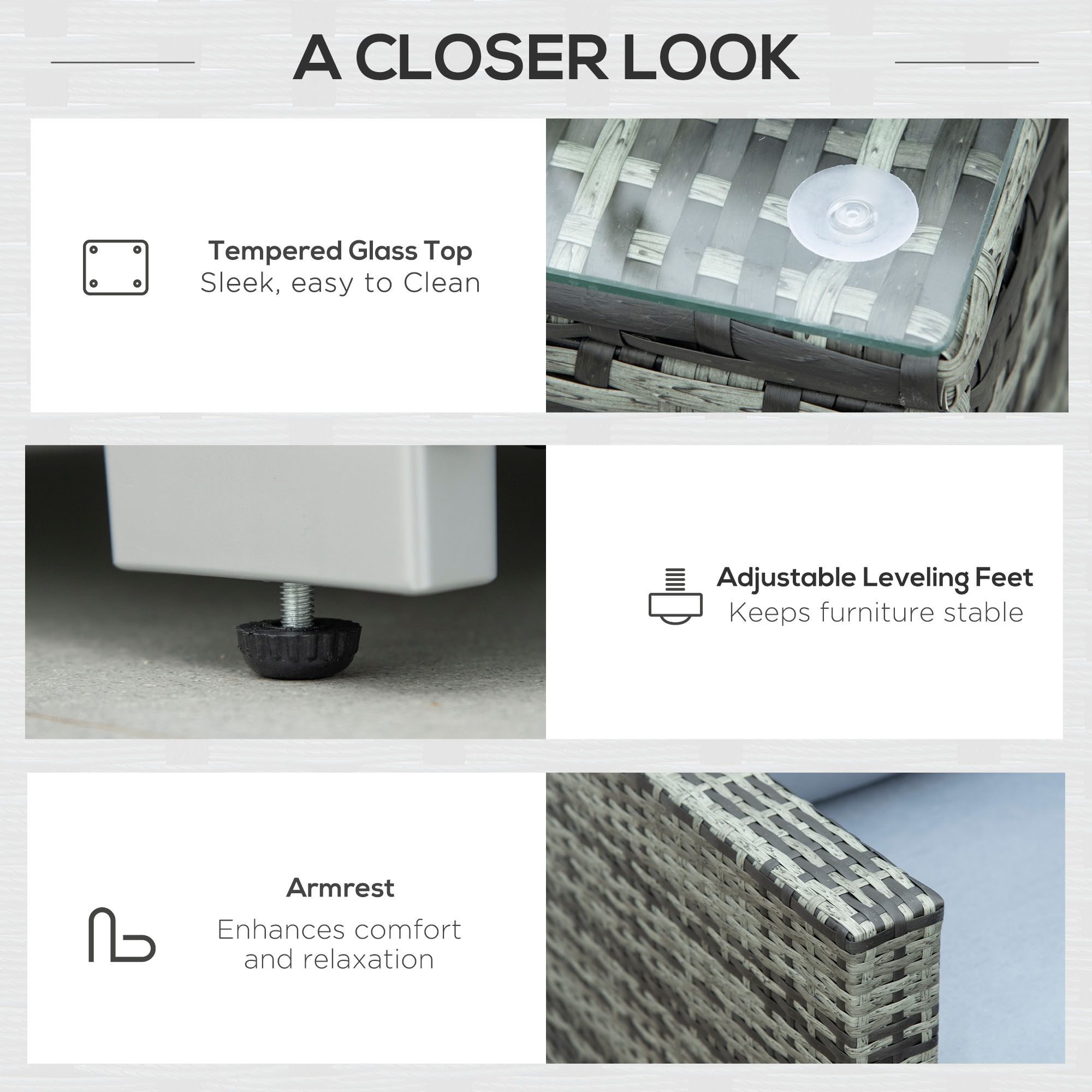 This Outsunny rattan furniture set allows you to rest and relax outdoors. Rust-resistant steel frames make strong pieces, with plastic wicker for a beautiful and tough rattan look. Seat and back cushions for comfort. Tempered glass tabletop for a sleek look - easy to maintain.
