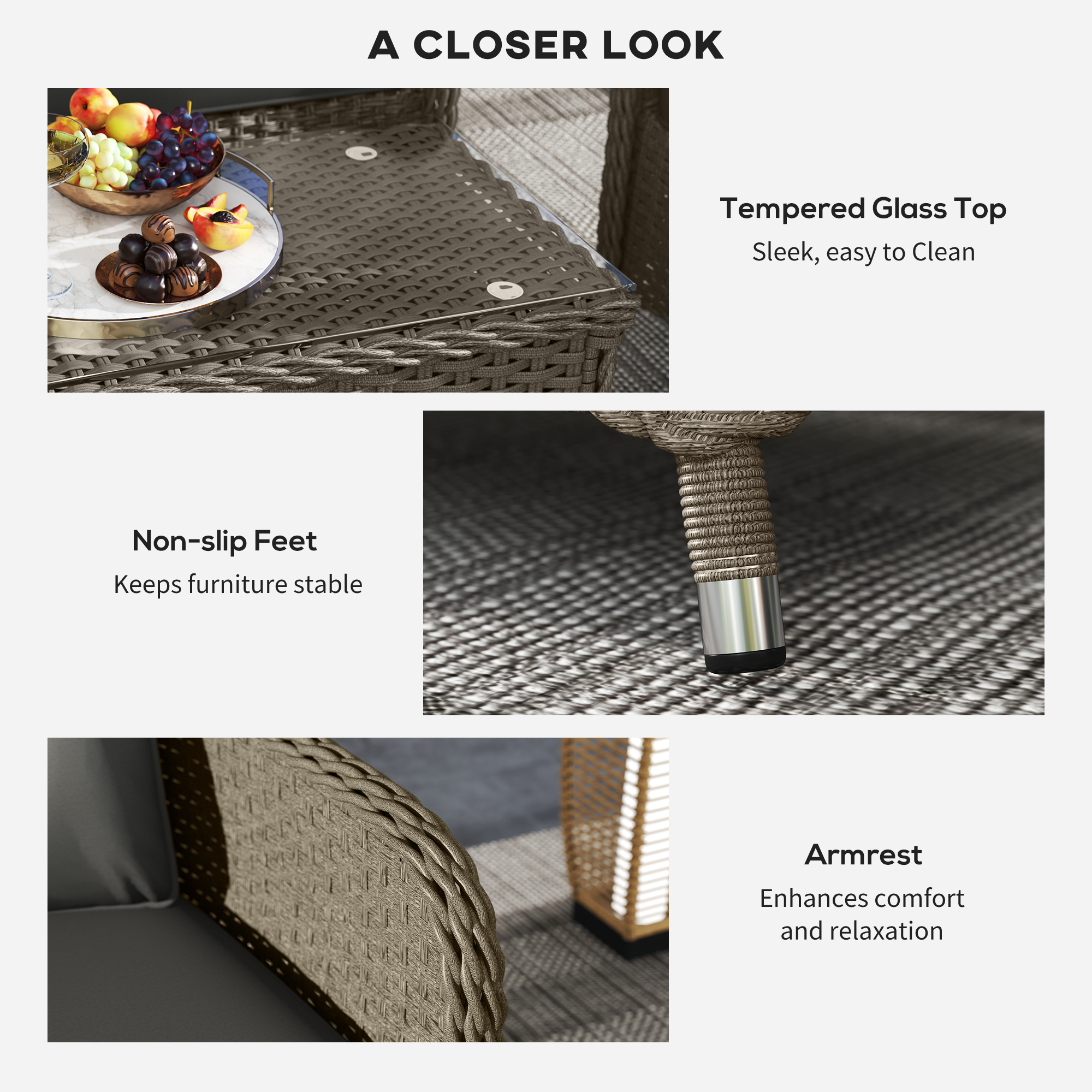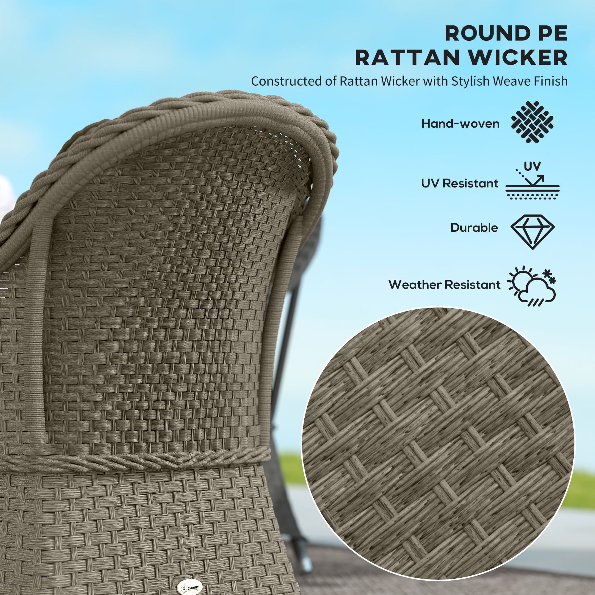 - Wrapped in beautiful mixed-tone and weather-resistant PE rattan