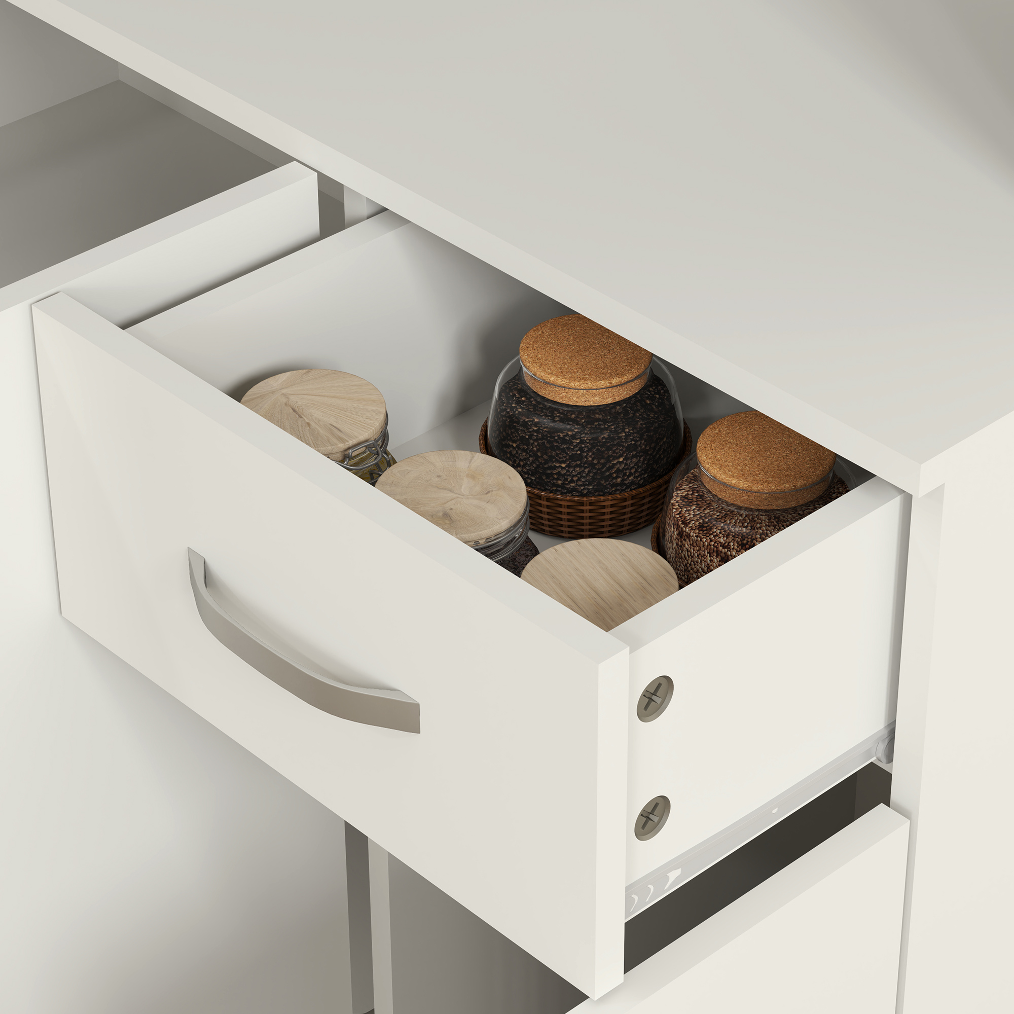 - Weight Capacity: 73 kg (total), 20 kg (countertop), 8 kg (each cabinet), 5 kg (drawer)