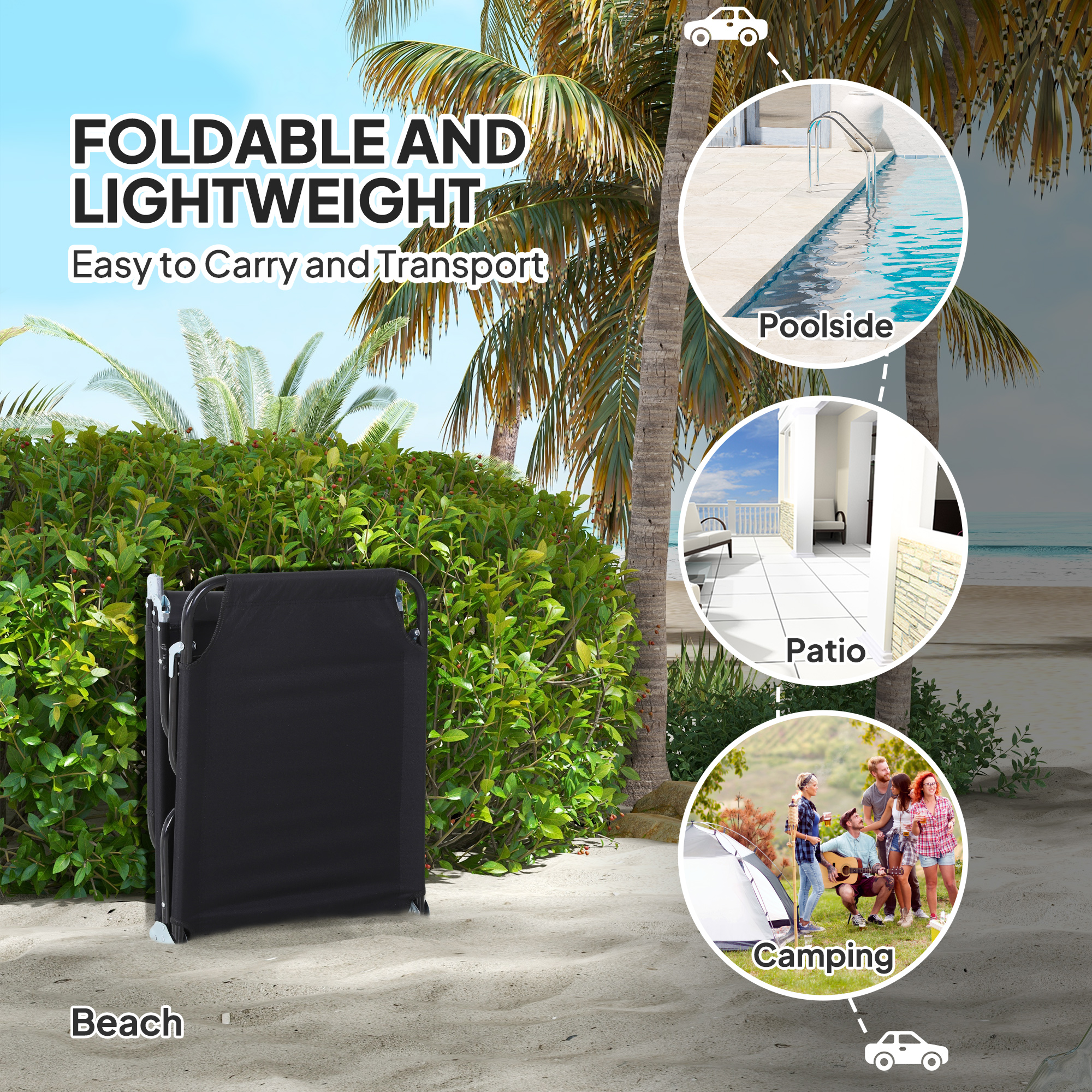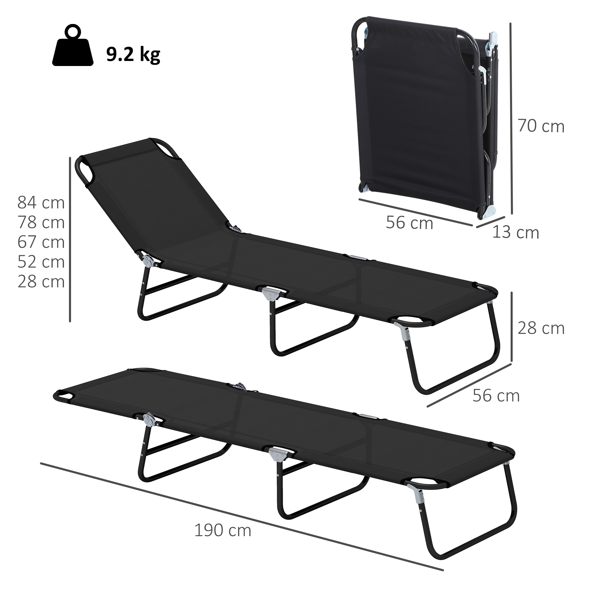 Our Outsunny folding sun lounger is strong, comfortable and will support you all afternoon long. Reinforced metal frames keep you supported - fabric seats are fitted to keep you comfortable. Three long legs keep the lounger balanced. The back can be set to five different positions - choose a position you prefer.