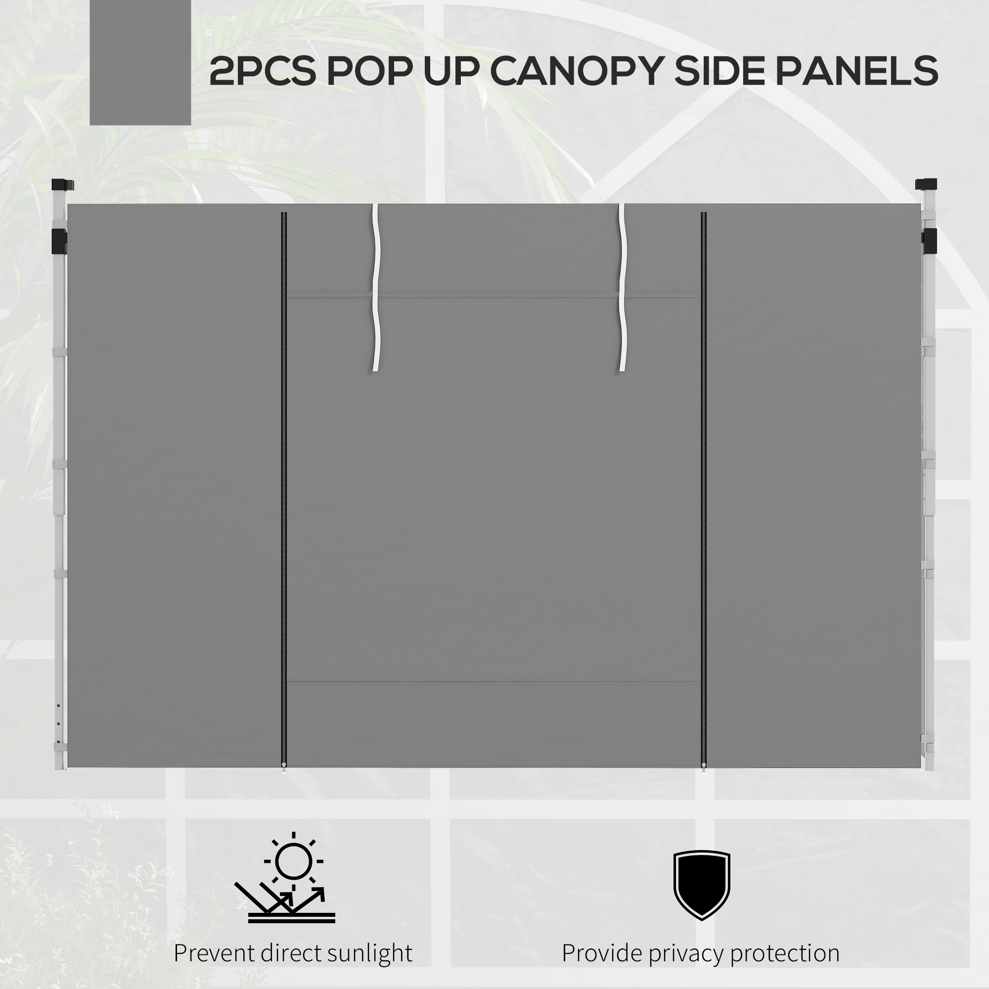 Designed to fit most 3 x 3(m) or 3 x 6m canopies, these Outsunny gazebo side panels give outdoor canopy tents a new lease of life. A set of two walls made from thick 210D Oxford cloth - suitable for outdoor use. Both walls feature a window to allow light through and a door to go in and out easily. To use, attach with the straps: super easy. Please note that only walls are included; the gazebo frame is not.