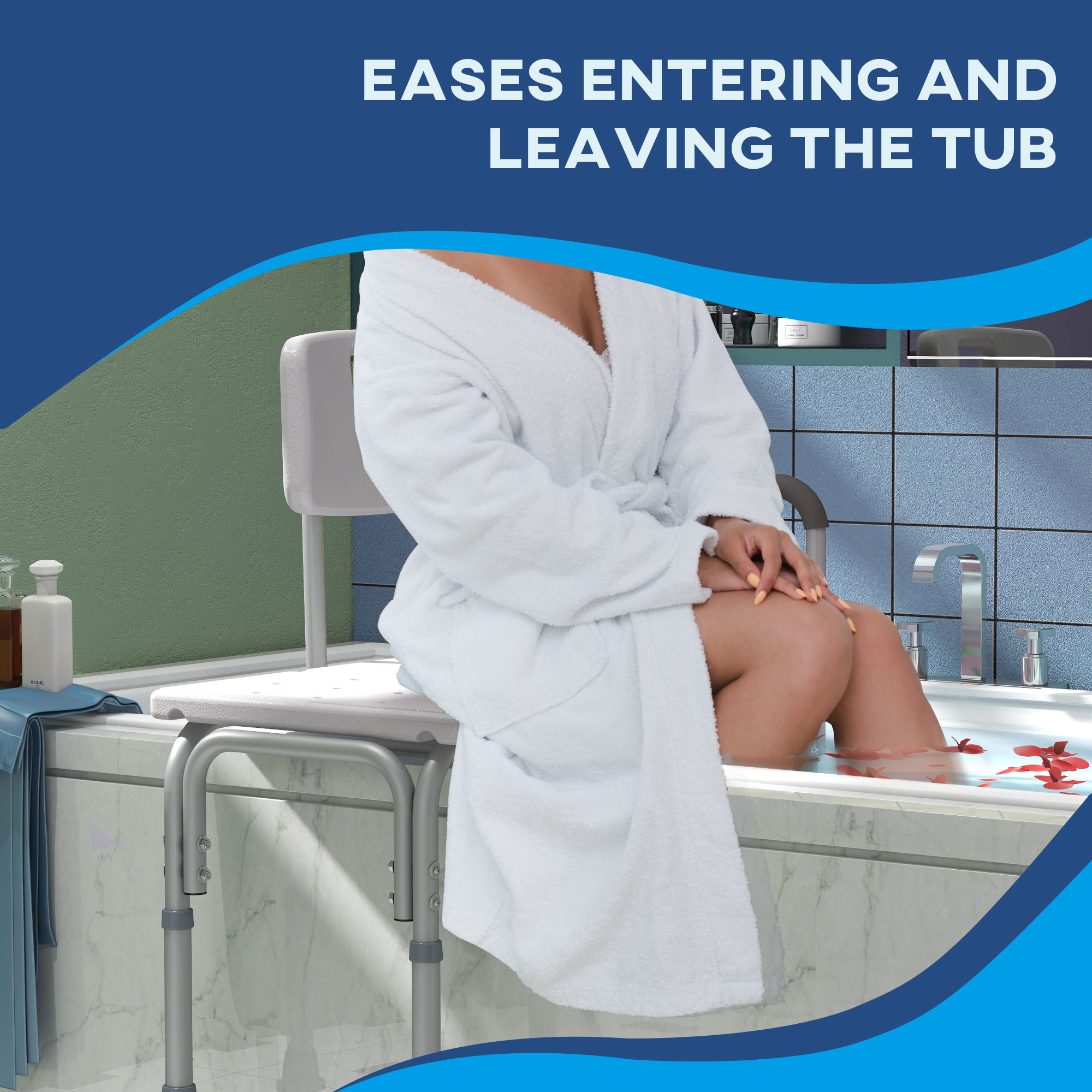 - Overlapping design to fit between bathtub and floor: move carefully from one side to the other