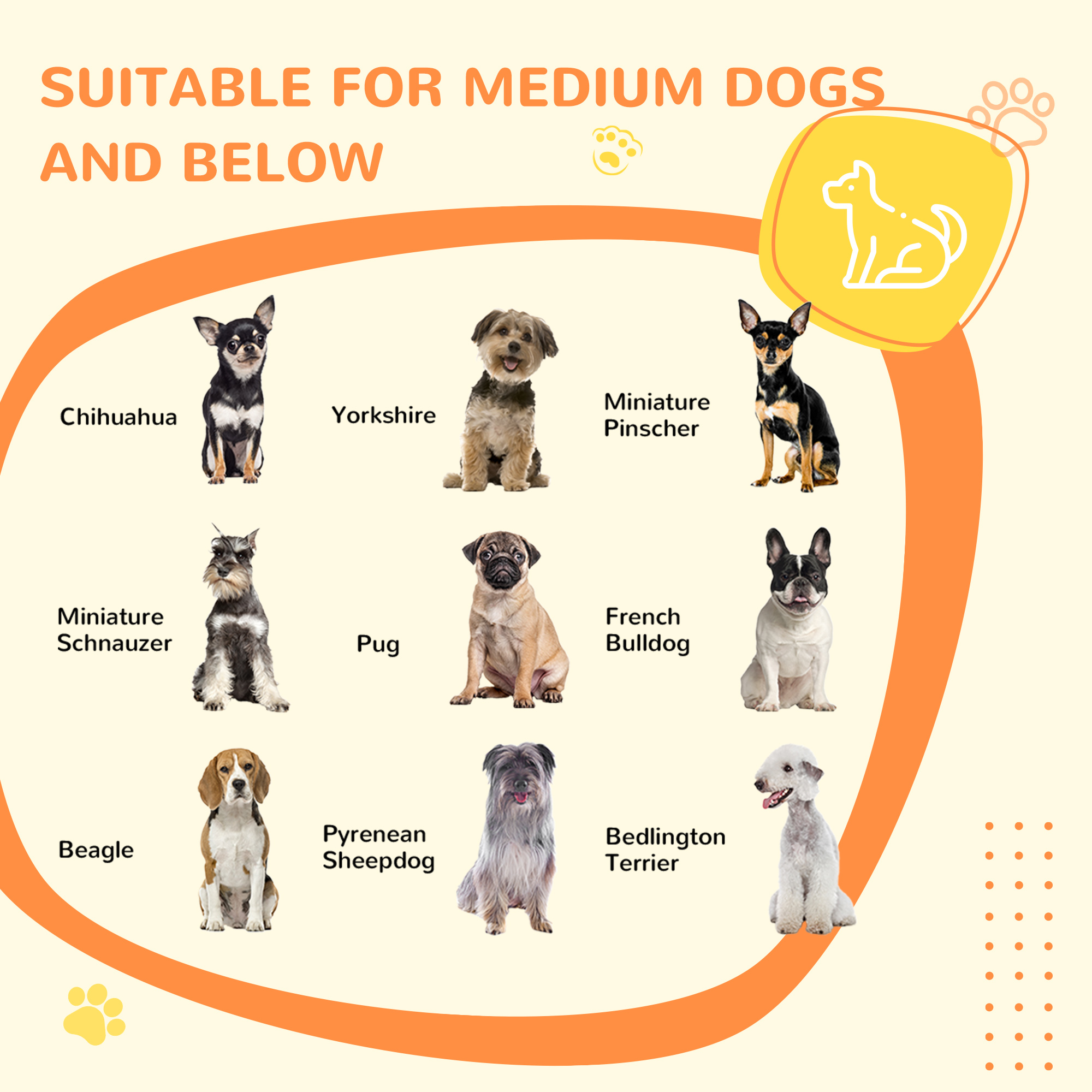 - Suitable for medium dogs and below, up to 20kg and 50cm in length