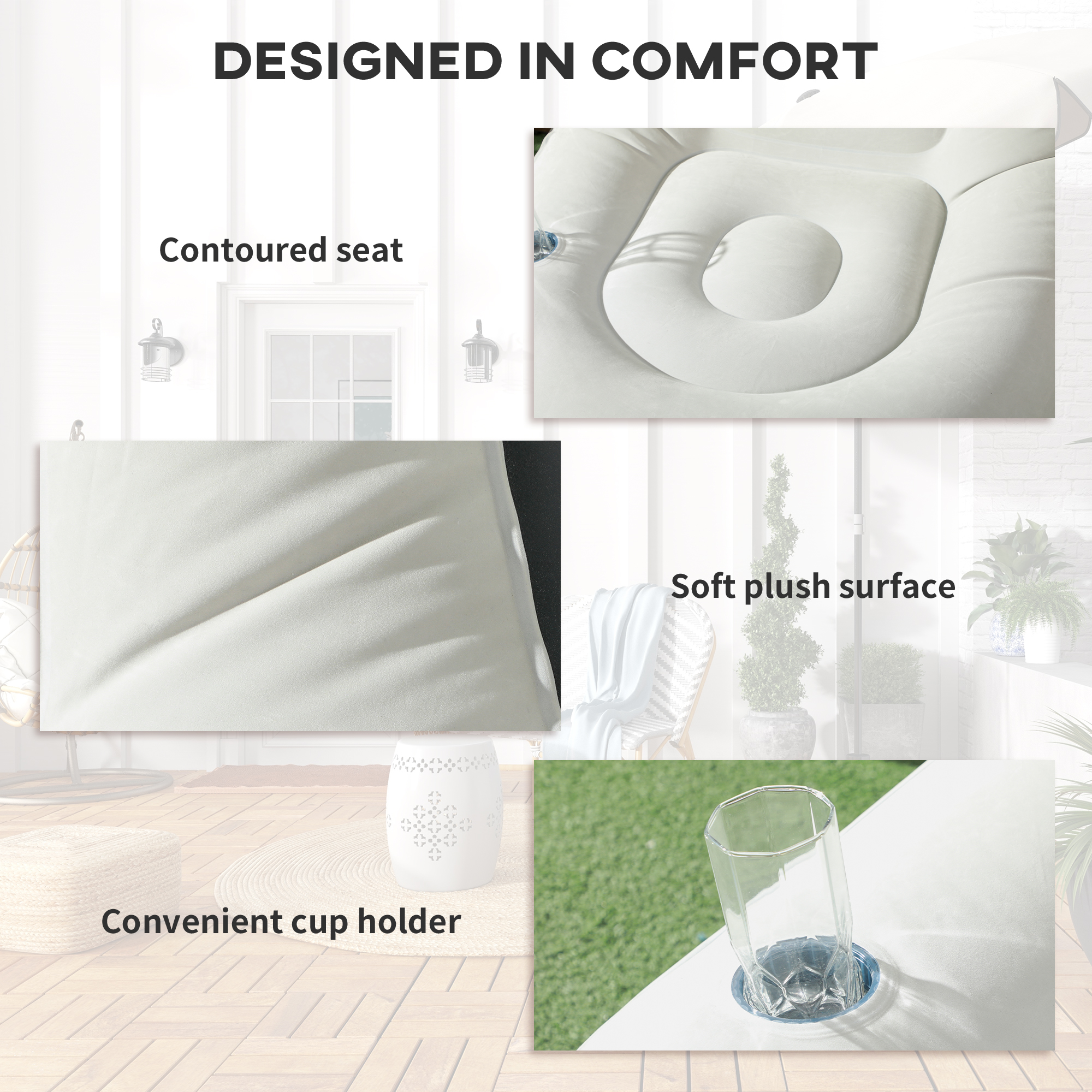 Kick back and relax with this Outsunny inflatable couch, complete with a matching footstool. The contoured seat and back ensures you're comfy, while the tough plastic material resists punctures. The handy cup holder keeps a drink within reach. When you're done, simply deflate to stow away.